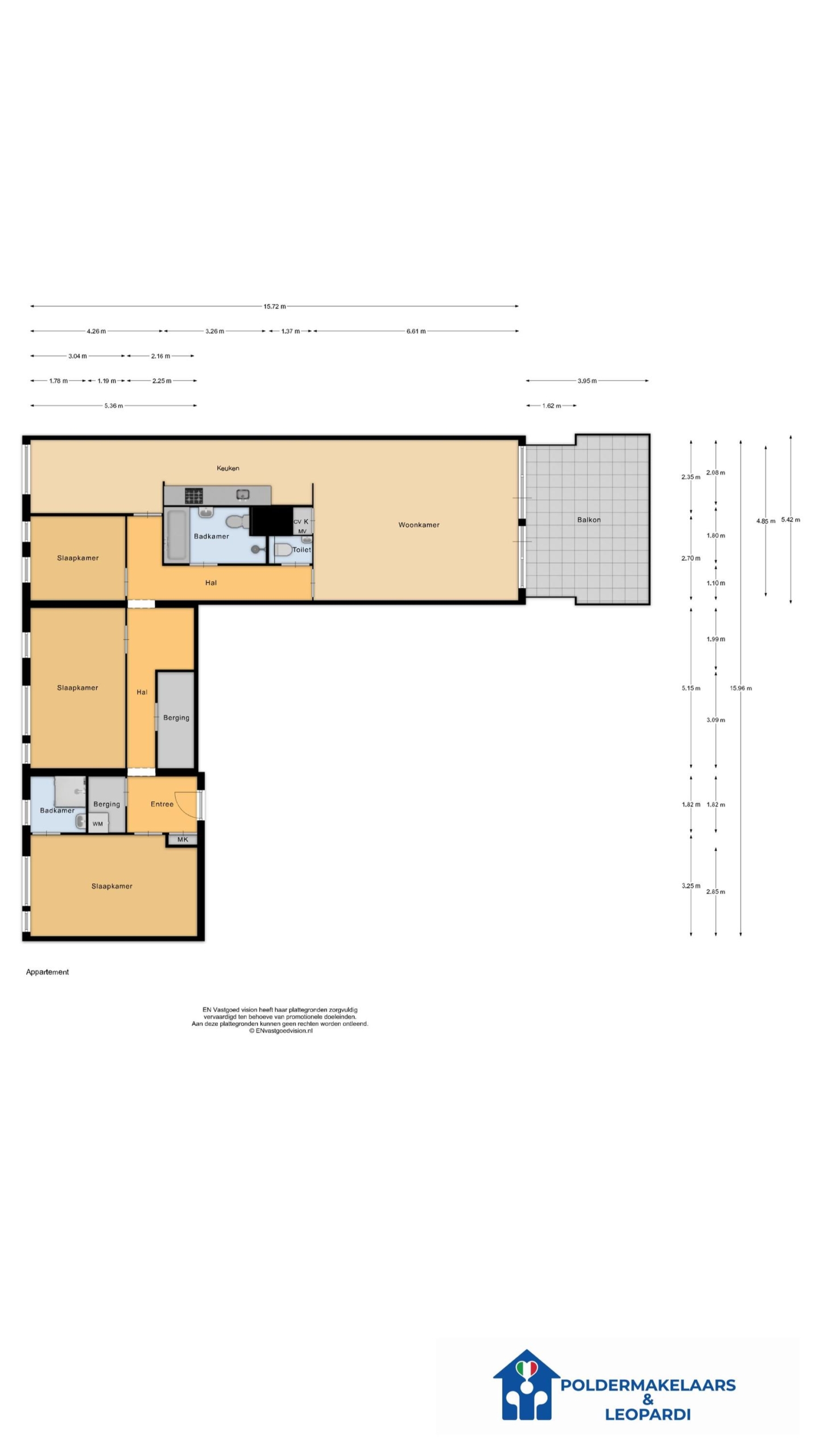 Een heerlijk vrij uitzicht, 3 ruime slaapkamers, extra groot balkon (circa 20 m²), ruime keuken, twee badkamers, berging en eigen parkeerplaats in de parkeerkelder..