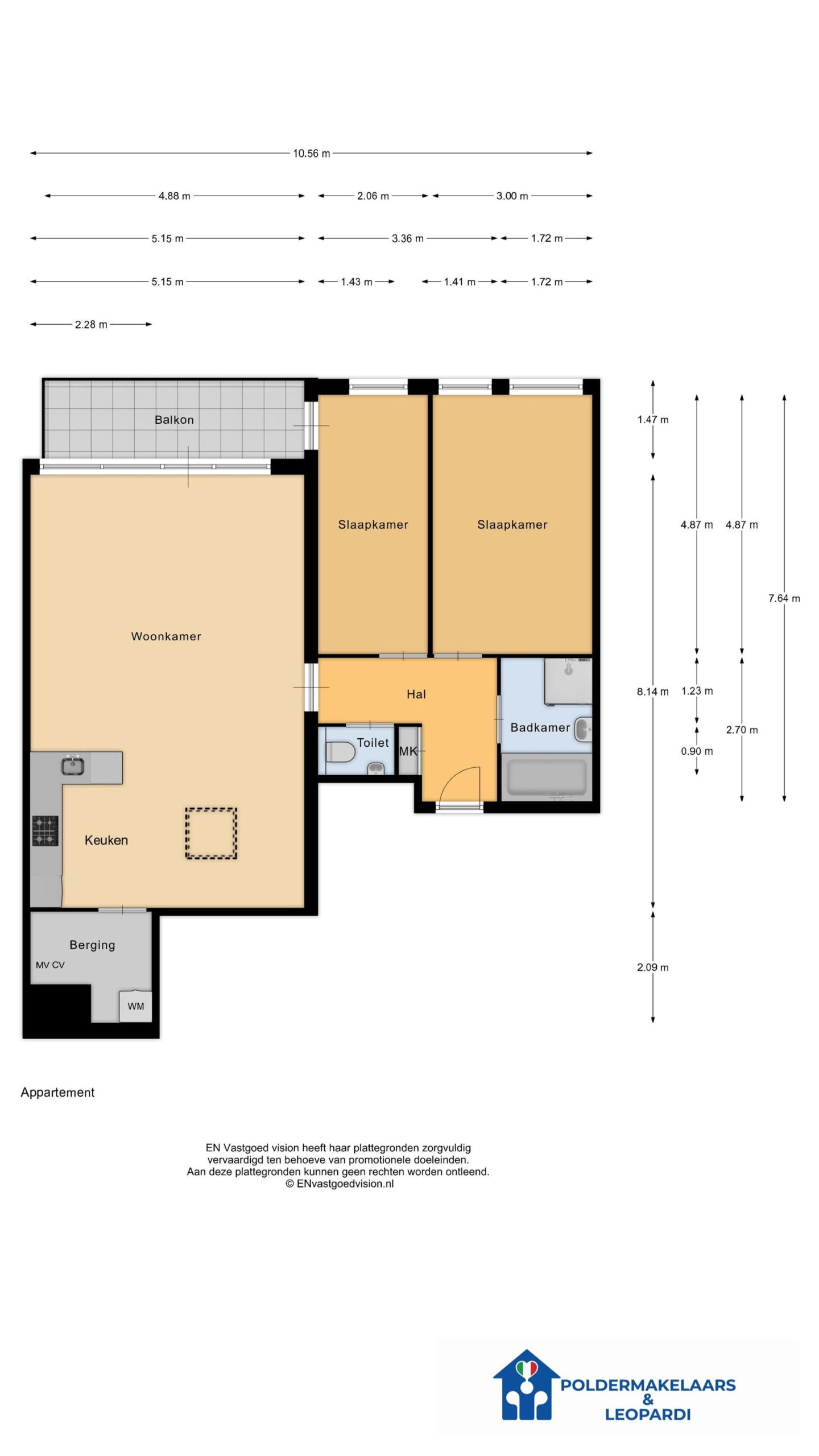 Bij binnenkomst via de entree stap je de ruime hal binnen, waar zich ook de meterkast met glasvezel en slimme meters bevindt. De lichte, royale woonkamer valt direct op dankzij de grote raampartijen. Via de woonkamer bereik je het zonnige balkon gelegen op het zuidwesten, dat prachtig vrij uitkijkt. De halfopen keuken in hoekopstelling is praktisch ingericht en voorzien van een 4-pits gasfornuis, afzuigkap, koel-vriescombinatie, vaatwasser en combi-oven en extra daglicht door de lichtkoepel. Het appartement beschikt over twee ruime slaapkamers. De ruime badkamer is uitgevoerd in een lichte kleurstelling en voorzien van een ligbad, separate douche en wastafel. In de hal vind je een separaat toilet met fonteintje. Tot slot tref je in de technische ruimte de aansluitingen voor wasmachine en droger, de c.v.-ketel (Intergas, 2015), de mechanische ventilatie én extra opbergruimte.