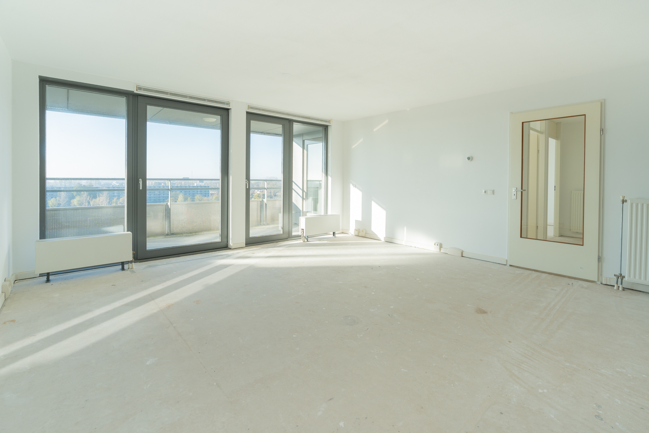 Bij binnenkomst via de entree stap je de ruime hal binnen, waar zich ook de meterkast met glasvezel en slimme meters bevindt. De lichte, royale woonkamer valt direct op dankzij de grote raampartijen. Via de woonkamer bereik je het zonnige balkon gelegen op het zuidwesten, dat prachtig vrij uitkijkt. De halfopen keuken in hoekopstelling is praktisch ingericht en voorzien van een 4-pits gasfornuis, afzuigkap en combi-oven en extra daglicht door de lichtkoepel. Het appartement beschikt over twee ruime slaapkamers. De ruime badkamer is uitgevoerd in een lichte kleurstelling en voorzien van een ligbad, separate douche en wastafel. In de hal vind je een separaat toilet met fonteintje. Tot slot tref je in de technische ruimte de aansluitingen voor wasmachine en droger, de c.v.-ketel (Intergas, 2023), de mechanische ventilatie én extra opbergruimte.