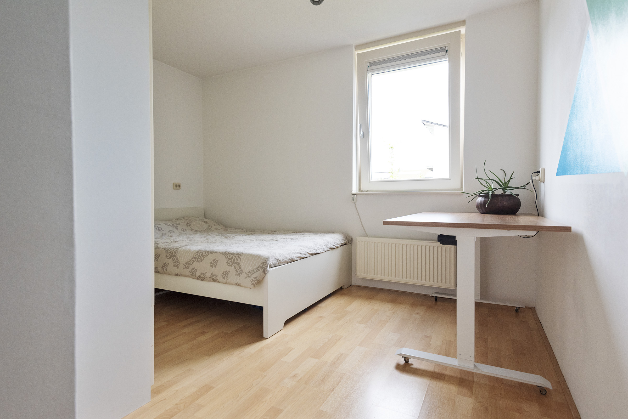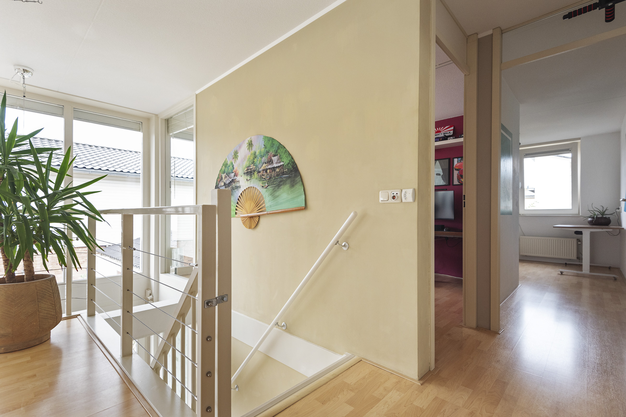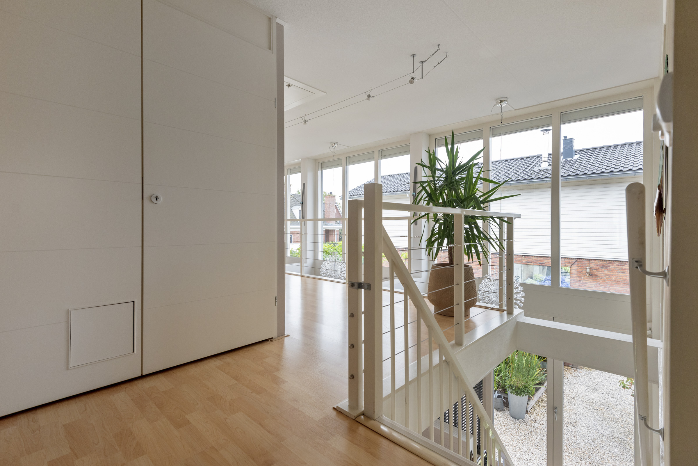 Overloop met de vaste kast waar de CV-ketel (ATAG HR, bouwjaar circa 2017) en zonneboiler zich bevinden. Tevens heb je hier ook veel bergruimte. De wasmachine en droger zijn netjes in een vaste kast weggewerkt. Aan de voorzijde bevindt zich een ruime slaapkamer en aan de zijkant nog een ruime slaapkamer voorzien van een Frans balkon met dubbel openslaande deuren. Aan de achterzijde zijn de 3e en 4e slaapkamer gelegen, waarvan er nu 1 in gebruik is als kantoor.
