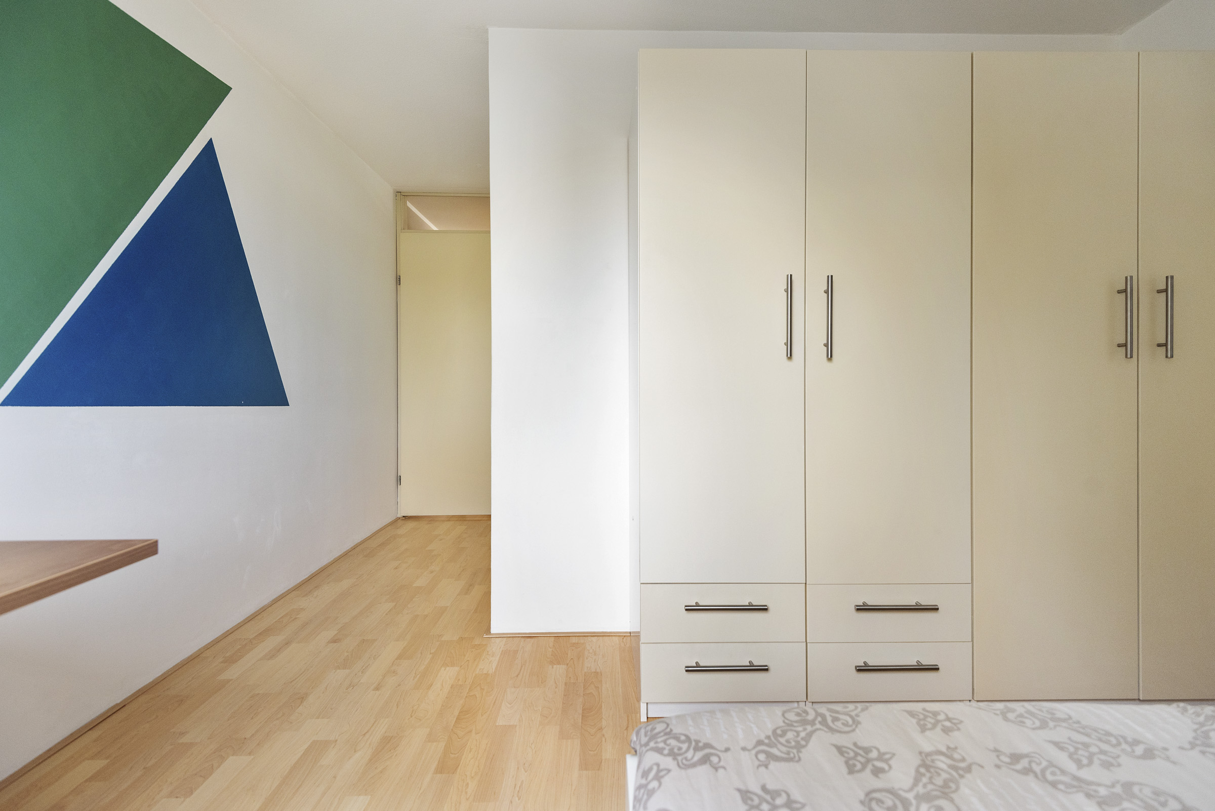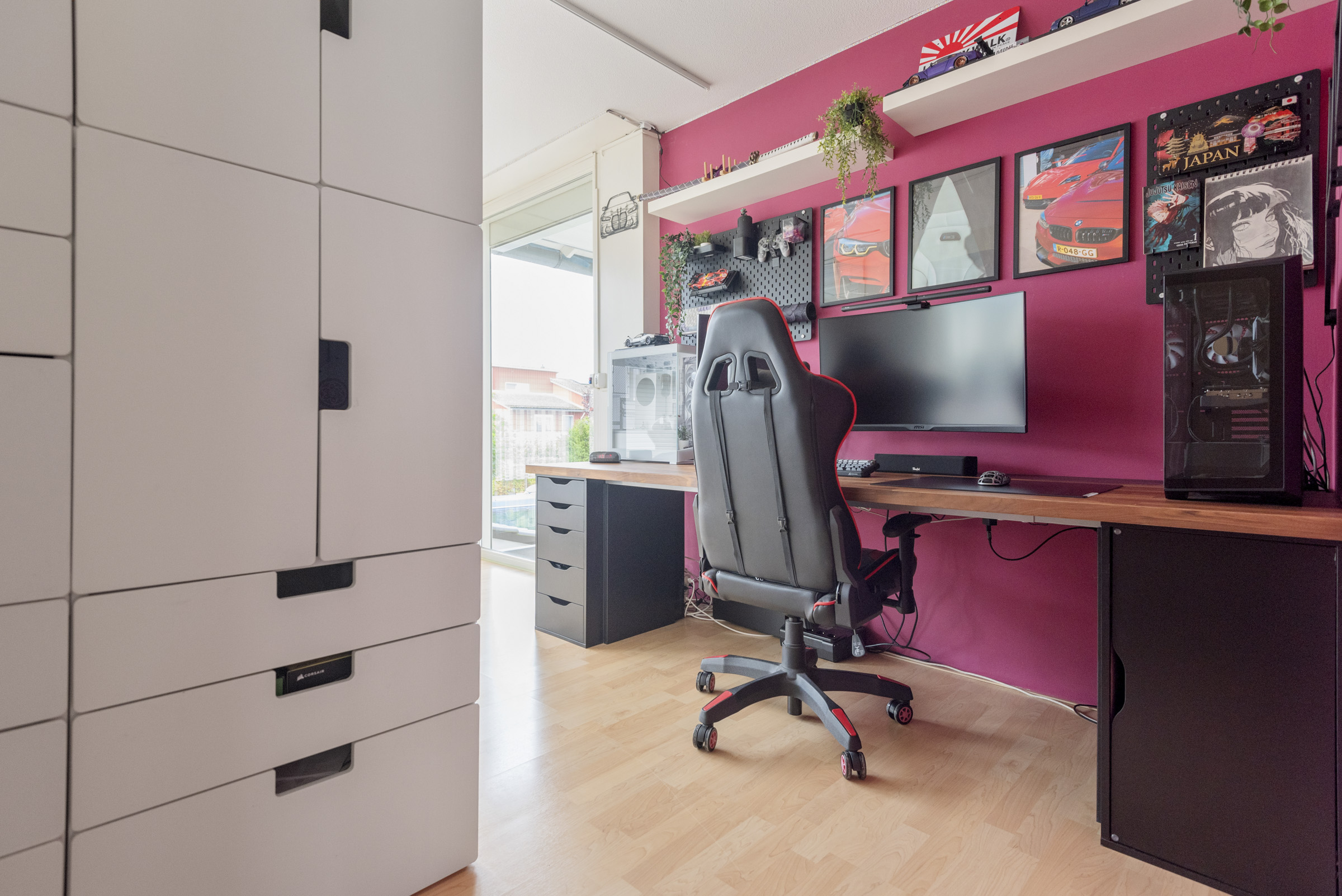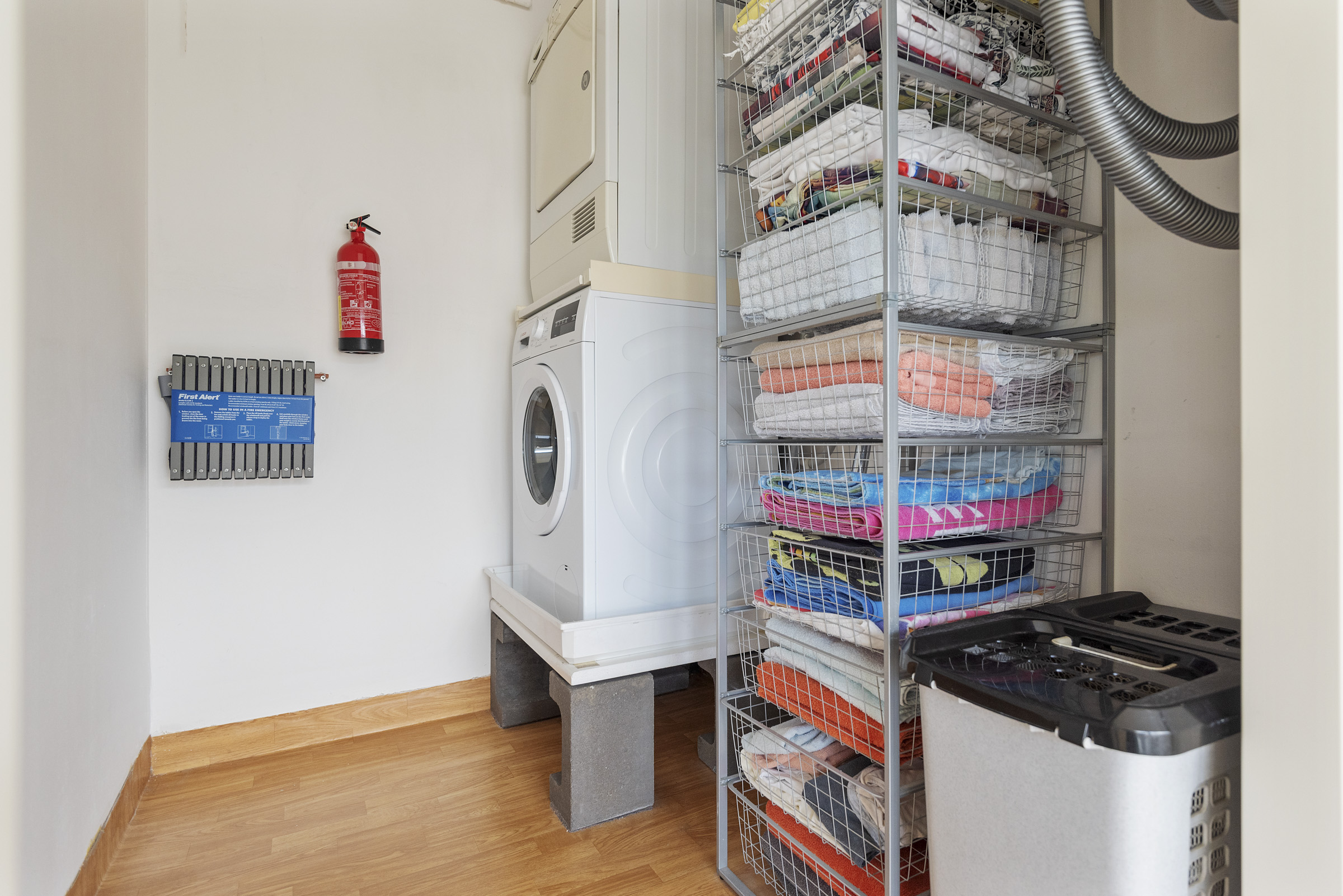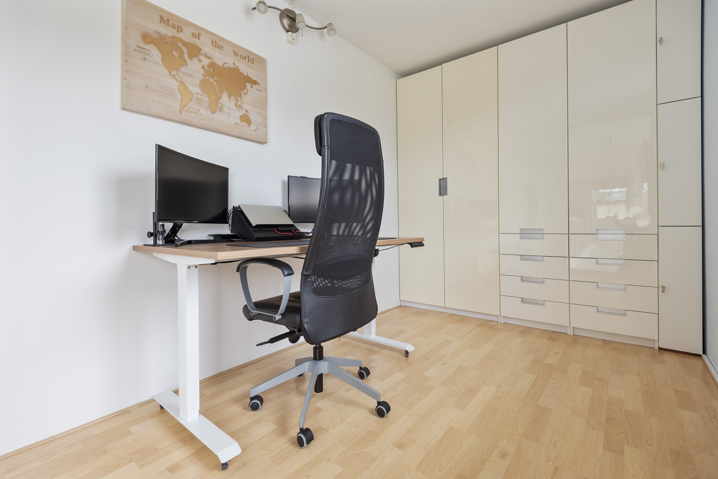 Overloop met de vaste kast waar de CV-ketel (ATAG HR, bouwjaar circa 2017) en zonneboiler zich bevinden. Tevens heb je hier ook veel bergruimte. De wasmachine en droger zijn netjes in een vaste kast weggewerkt. Aan de voorzijde bevindt zich een ruime slaapkamer en aan de zijkant nog een ruime slaapkamer voorzien van een Frans balkon met dubbel openslaande deuren. Aan de achterzijde zijn de 3e en 4e slaapkamer gelegen, waarvan er nu 1 in gebruik is als kantoor.