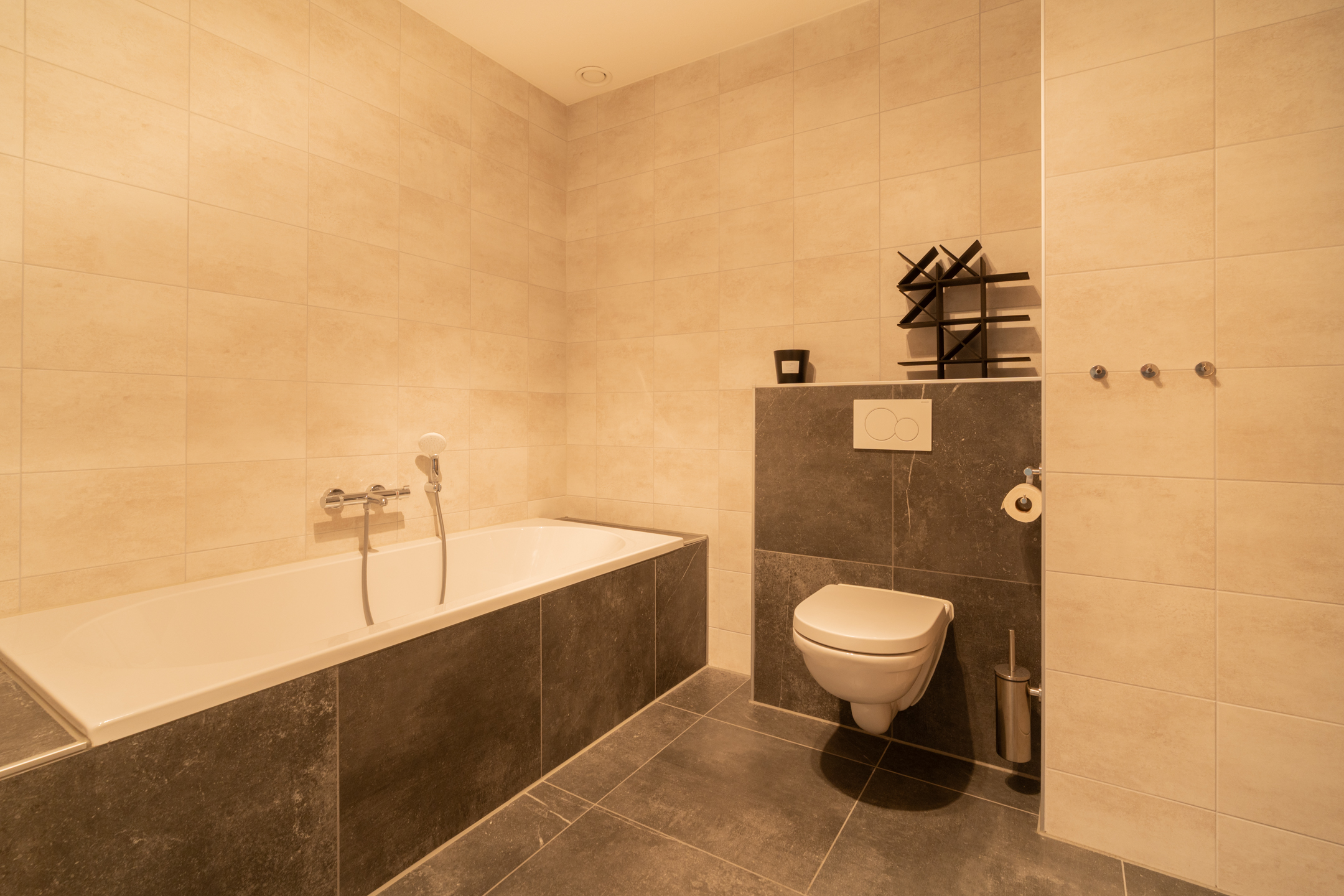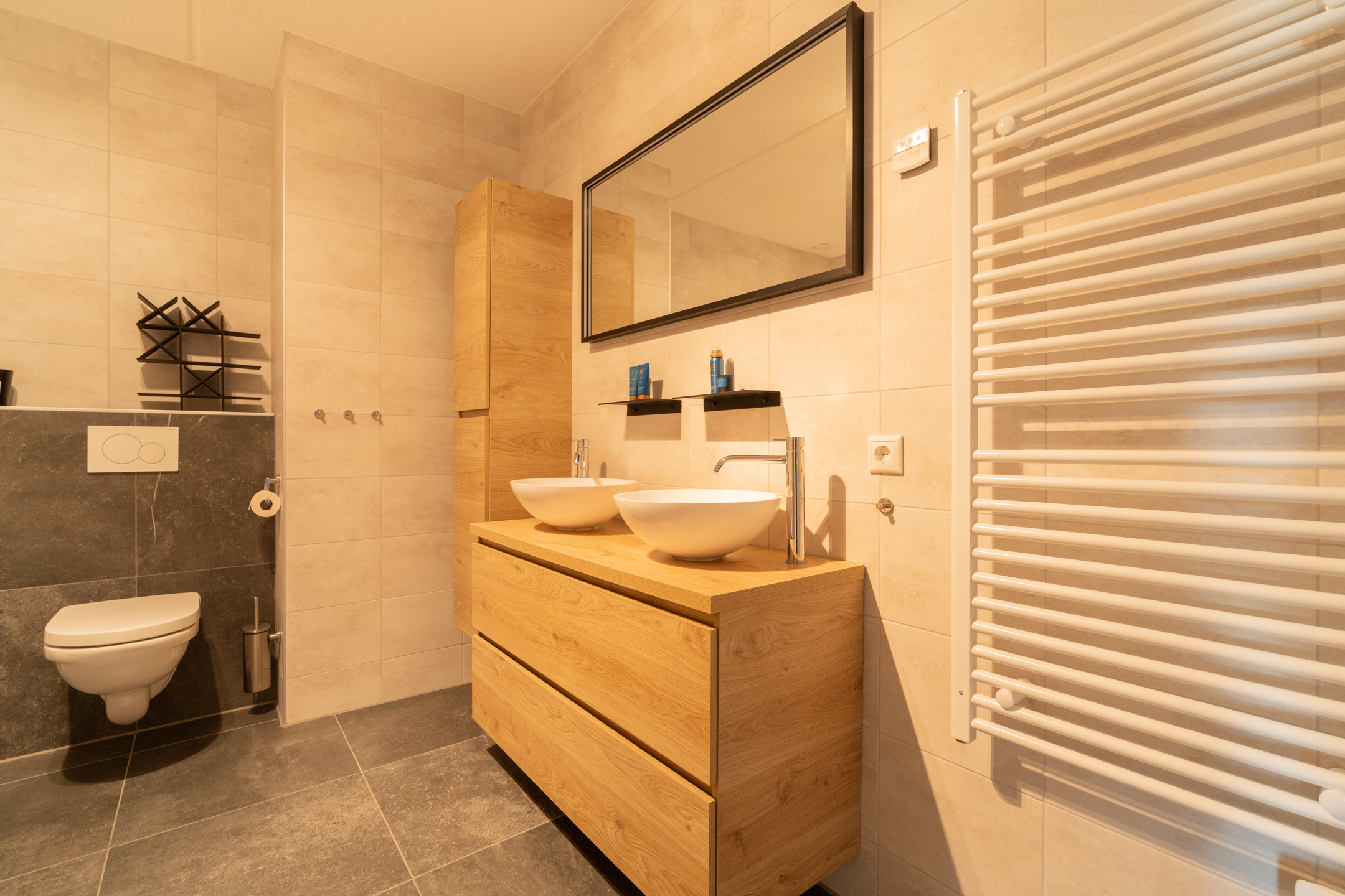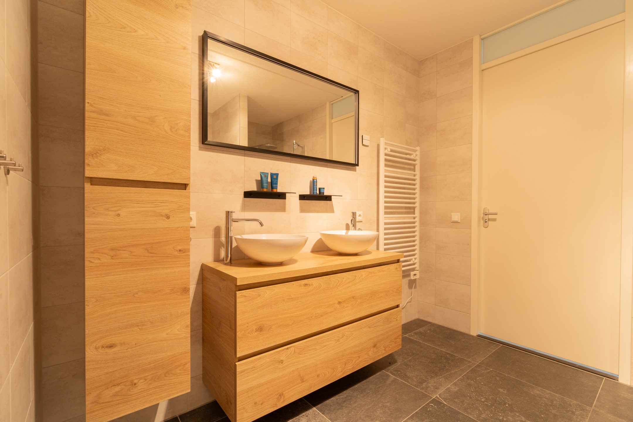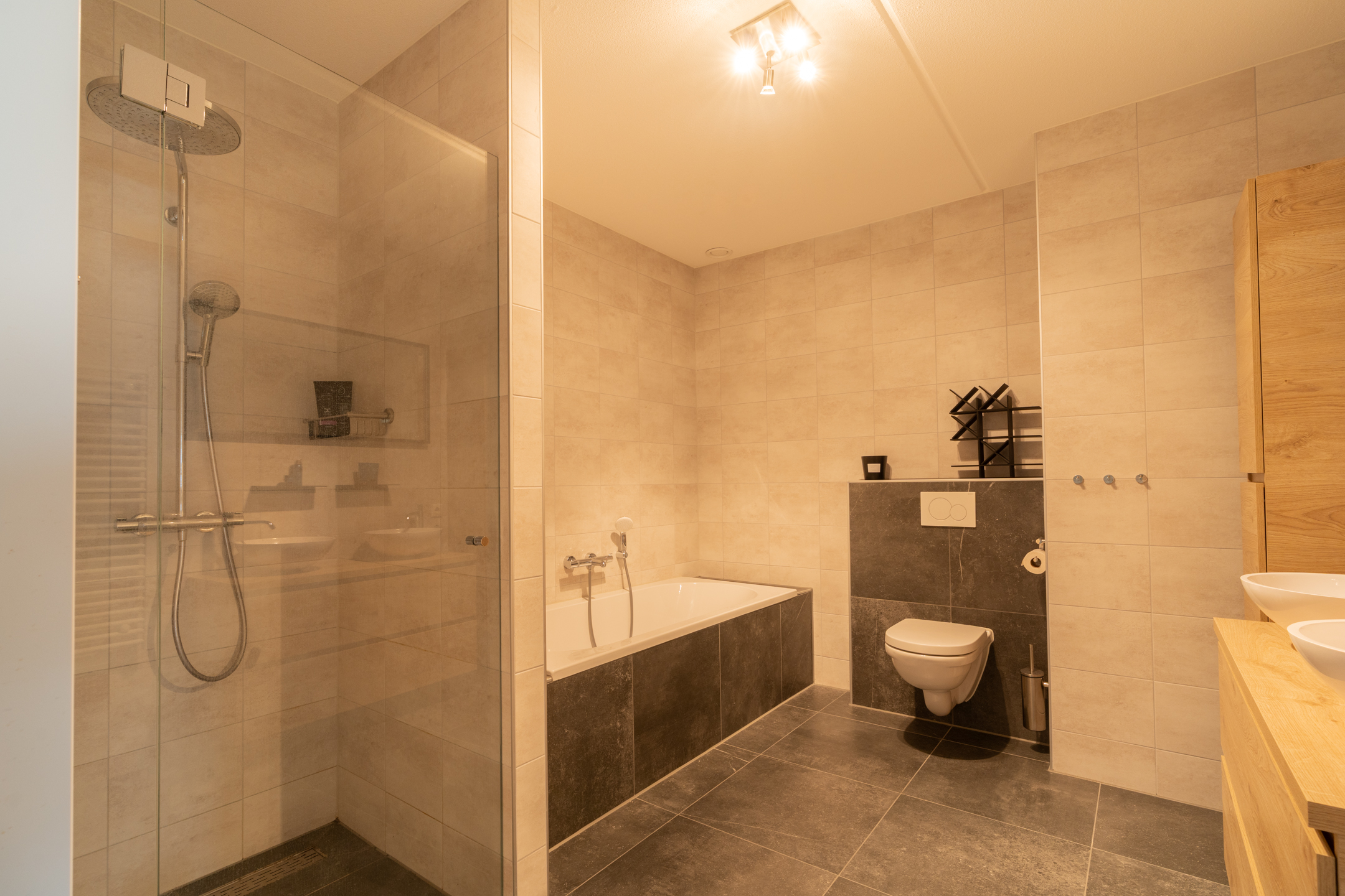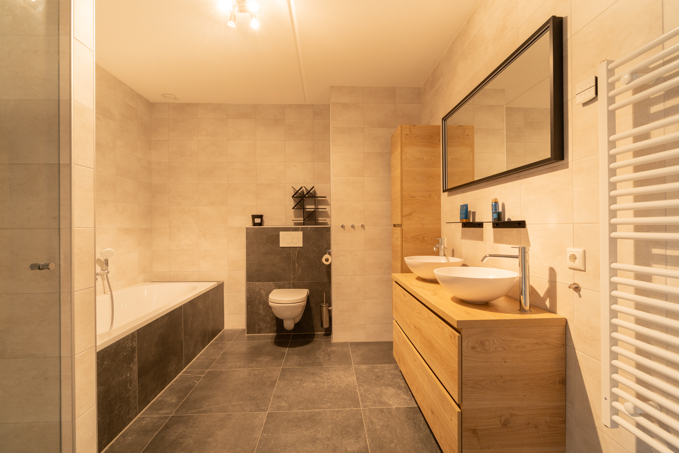 - Bathroom facilities Ligbad, toilet, dubbele wastafel, wastafelmeubel, inloopdouche, vloerverwarming