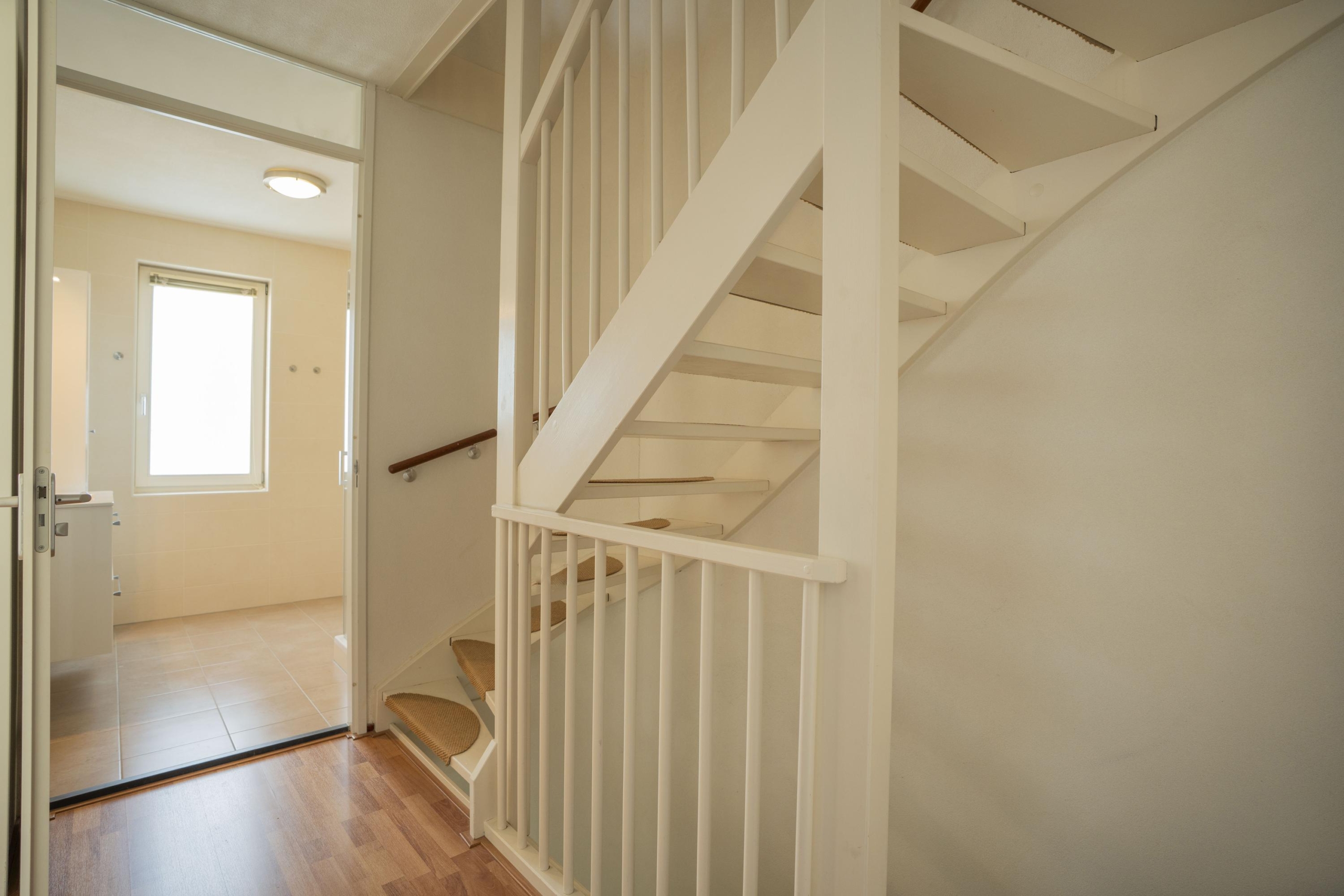 Overloop met toegang tot alle vertrekken. Aan de voorzijde is een slaapkamer, voorzien van een dakkapel en een extra Velux dakraam, gelegen. Een stook-/wasruimte met de wasmachineaansluiting, opstelplaats van de MV-box en cv-ketel (Intergas, 2022) en een kleine wastafel.