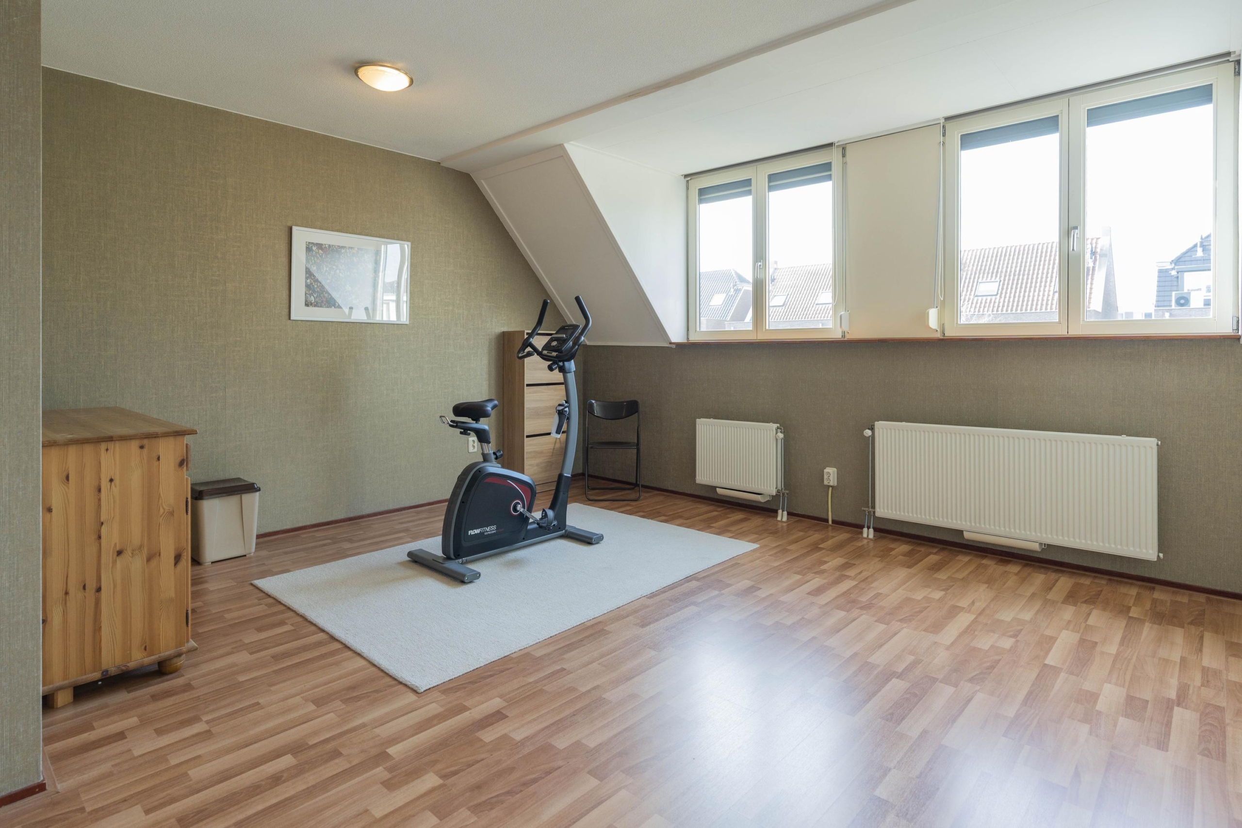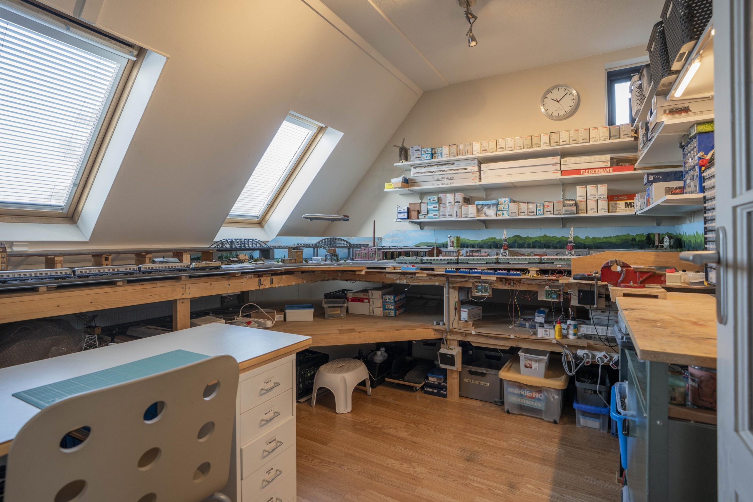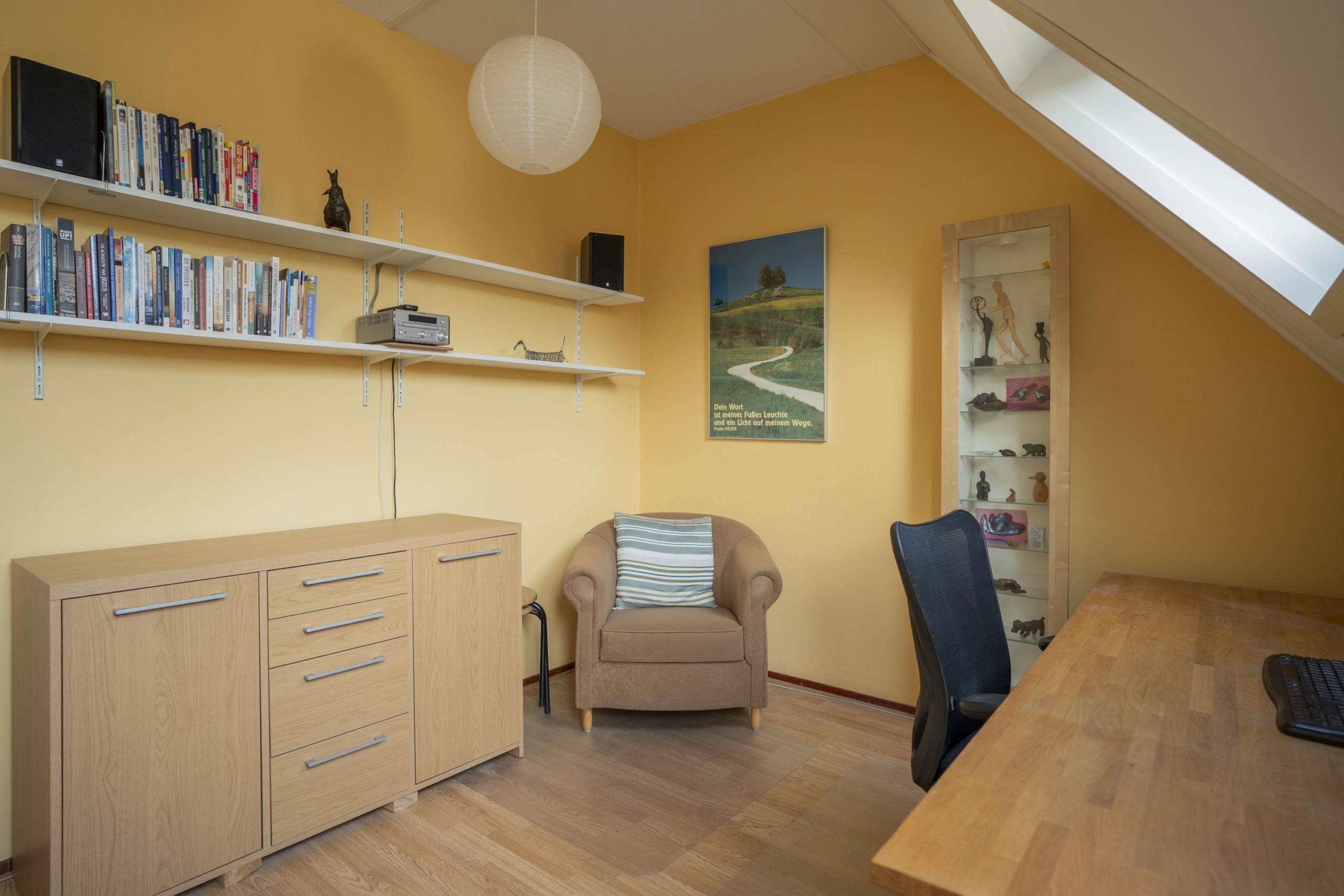 Aan de achterzijde is een ruimere slaapkamer gelegen welk is voorzien van 3 Velux dakramen en de toegang tot de vliering.