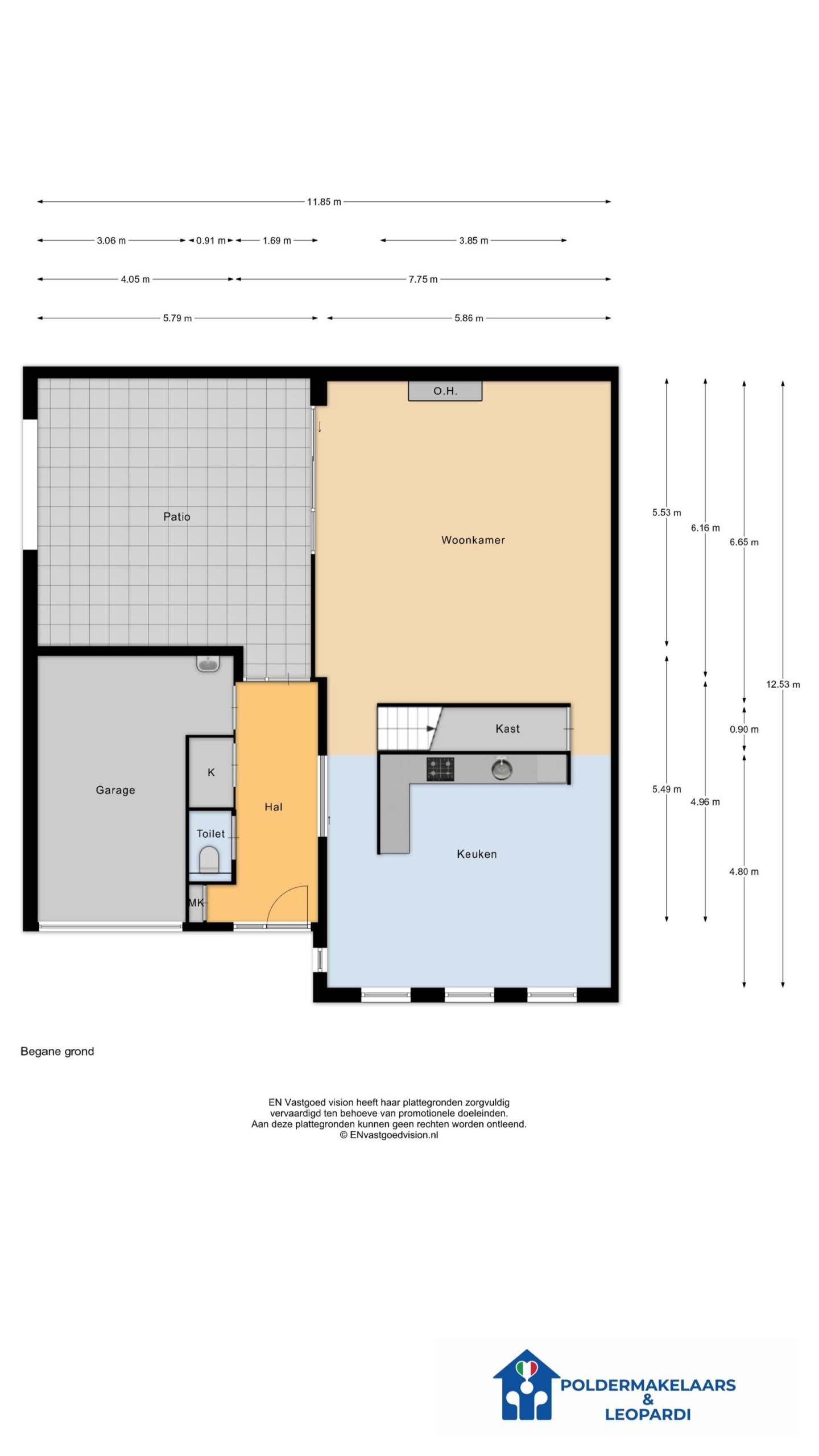 Entree, hal, uitgebreide moderne meterkast met glasvezel, toilet met fonteintje en garderobekast. De hal wordt door middel van een schuifdeur afgesloten van de woonkeuken en woonkamer. De heerlijk ruime woonkeuken, voorzien van vloerverwarming, kijkt vrij uit op Stadspark Hoofddorp en beschikt over de volgende inbouwapparatuur; koelkast, vriezer, combi-oven, kookplaat, afzuigkap en vaatwasser. De woonkamer heeft ramen tot aan de grond, waardoor de patio onderdeel wordt van de woonkamer. Via de schuifpui in de woonkamer of vanuit de hal via een loopdeur kom je in de op het zonnige zuidwesten gelegen patio, hier is het elk seizoen heerlijk uit de wind vertoeven. De garage is zowel van buitenaf als vanuit de hal bereikbaar. De garage beschikt over een elektrische kanteldeur, verwarming, water en elektra.