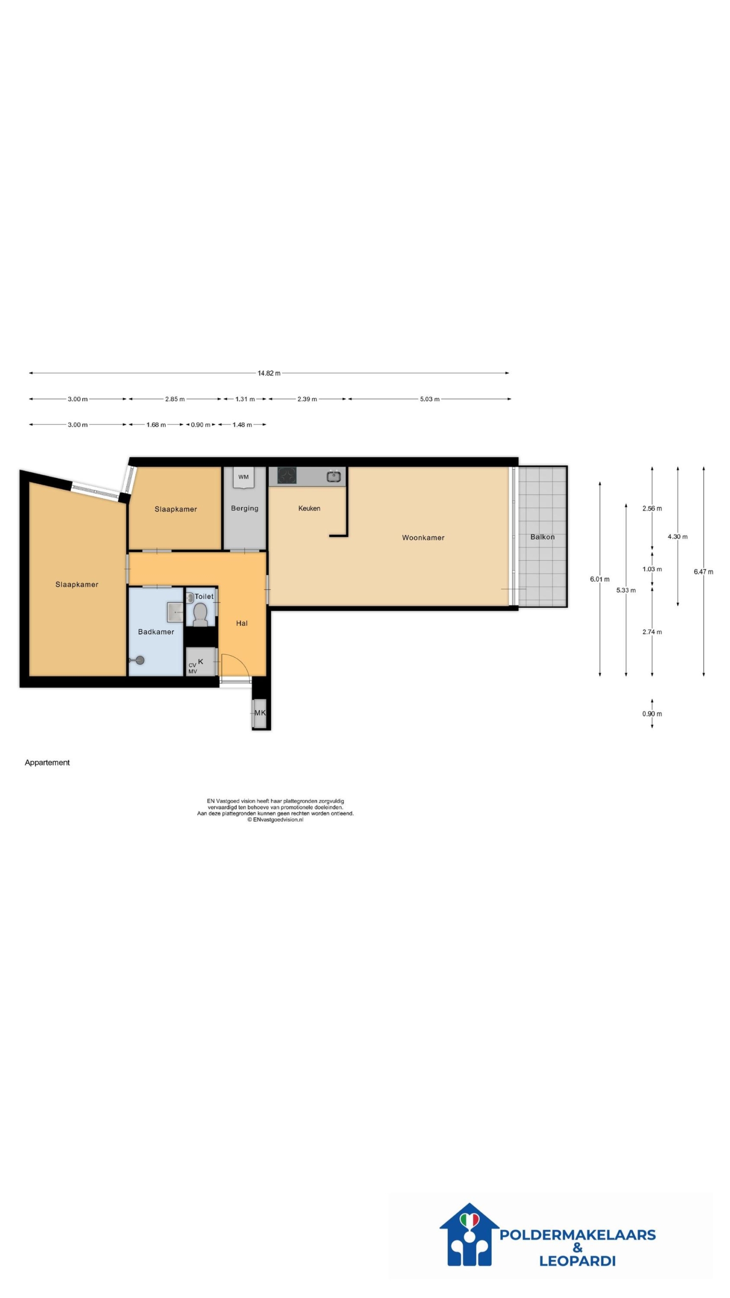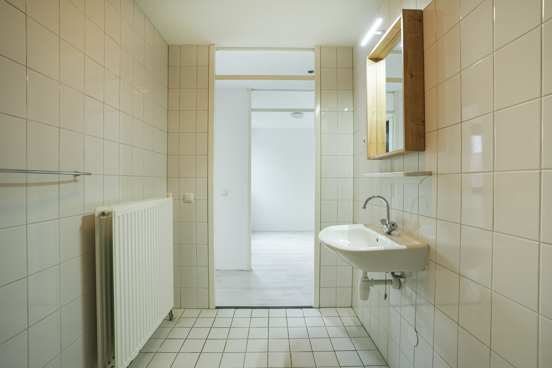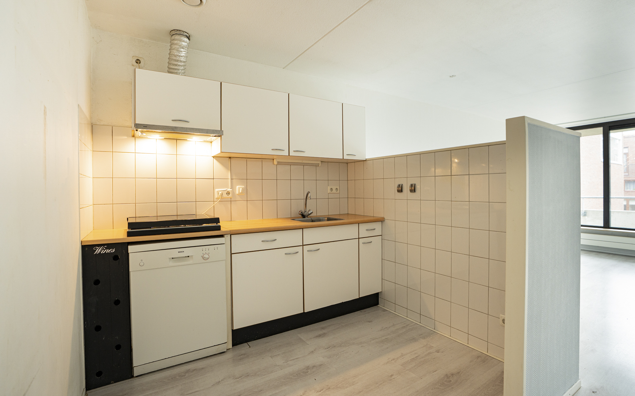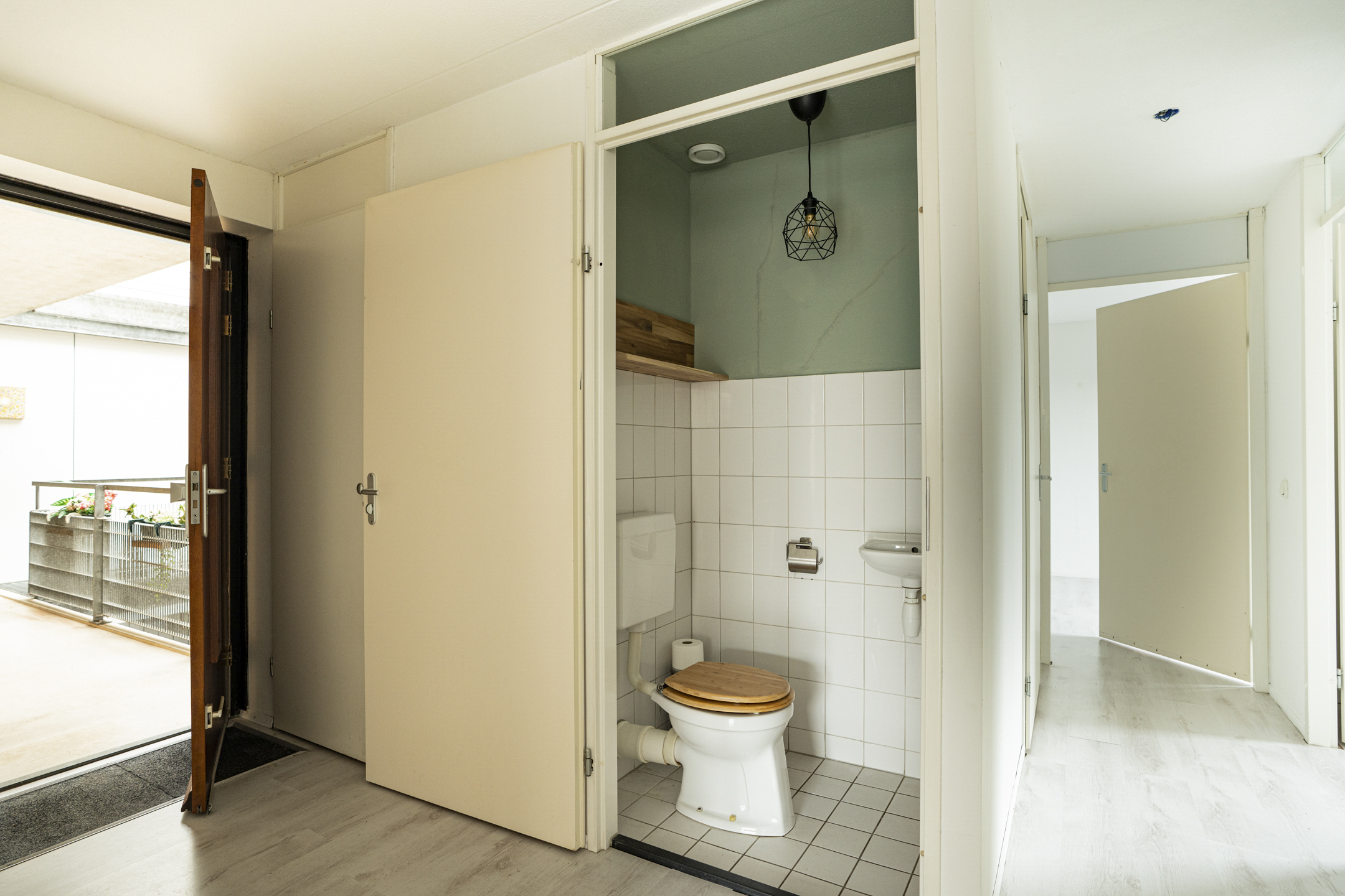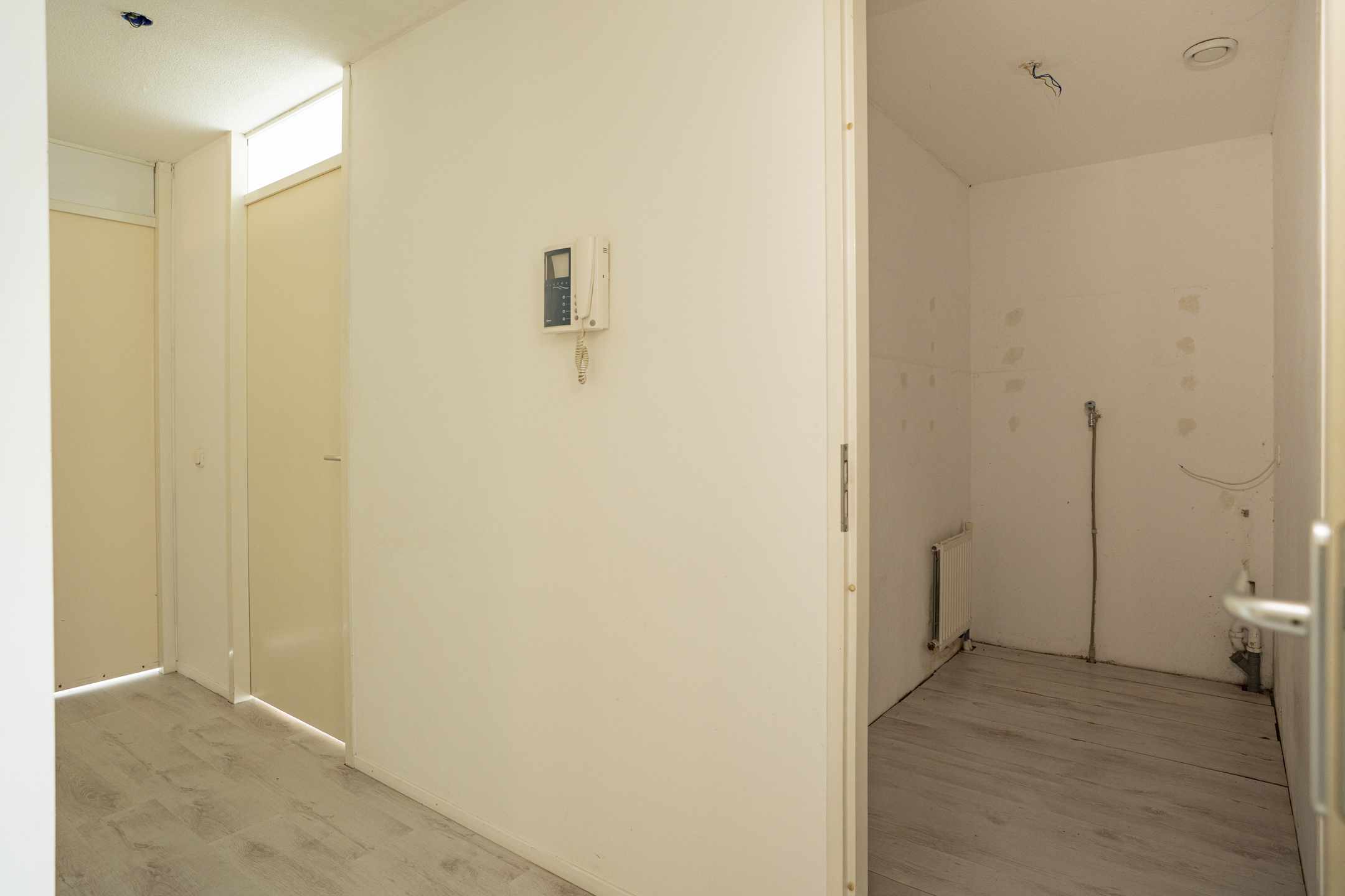 Entree, hal, toilet met fonteintje, wasruimte annex bijkeuken en de bergkast met de CV-ketel (Intergas HR, bouwjaar circa 2018) en mechanische ventilatie. De woonkamer heeft vrij uitzicht en geeft toegang tot het zonnige balkon op het noordwesten gelegen. De ruime half-open keuken beschikt over een standaard keukenblok met wat extra kasten, mogelijkheden en ruimte genoeg om van deze keuken wat moois van te maken. Er is een riante ouderslaapkamer en ruime 2e slaapkamer. De badkamer is voorzien van een douche en wastafel.