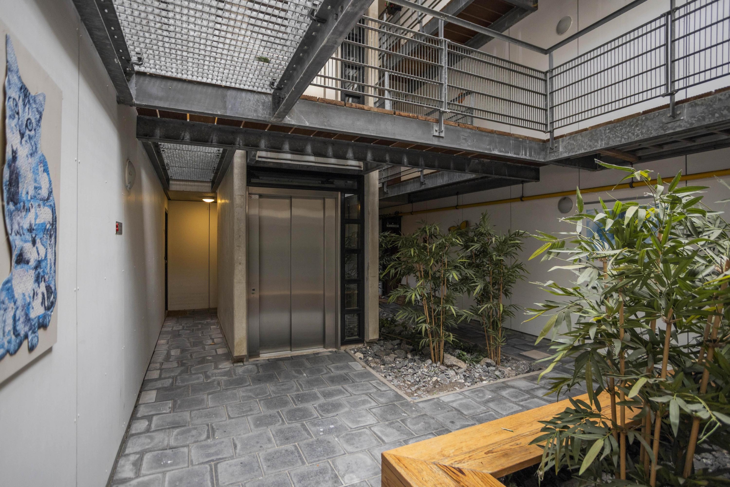 Centrale entree, brievenbussen, bellentableau, trap, lift, algemene (fietsen)berging en trapafgang naar privé-bergingen.