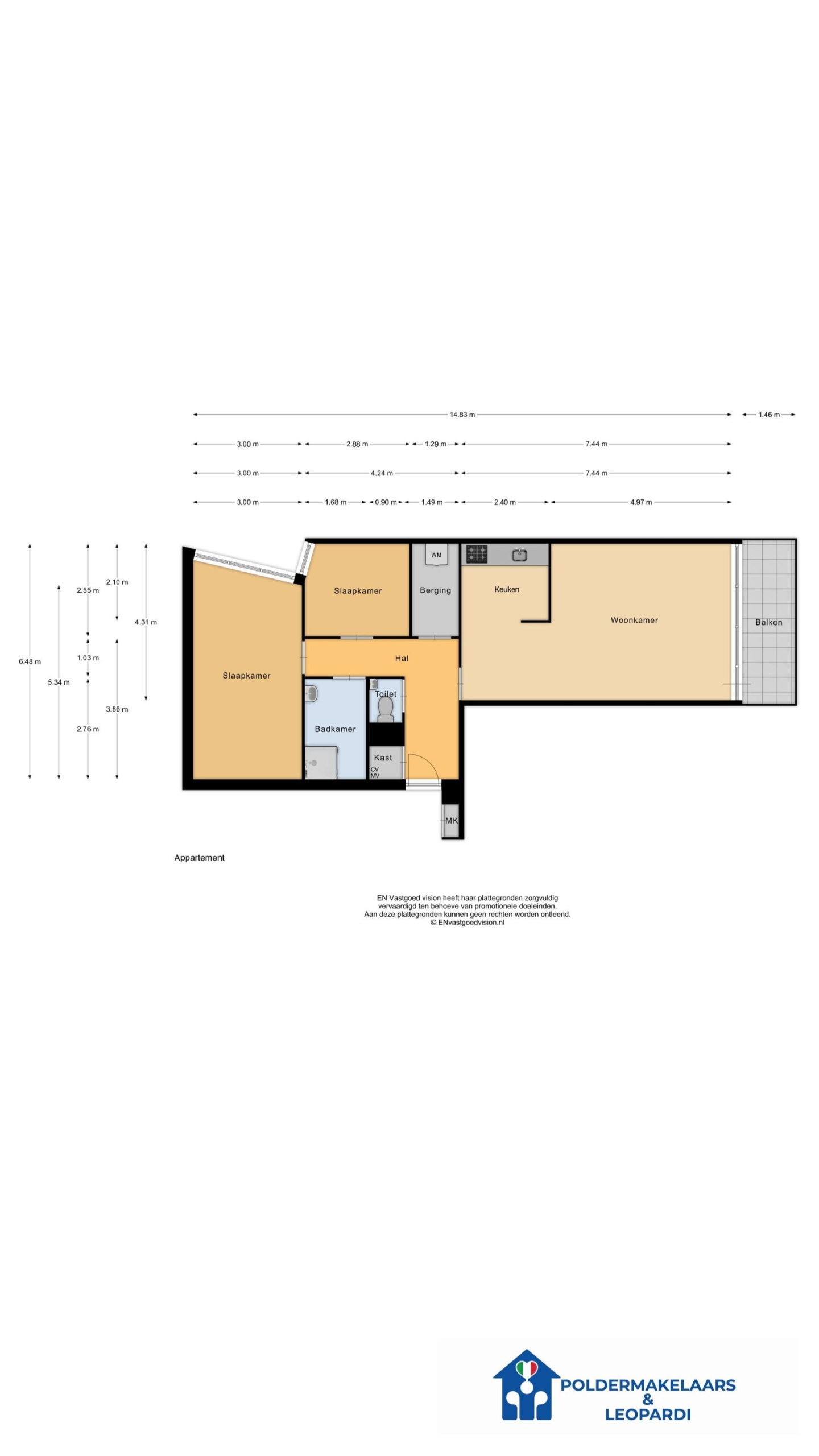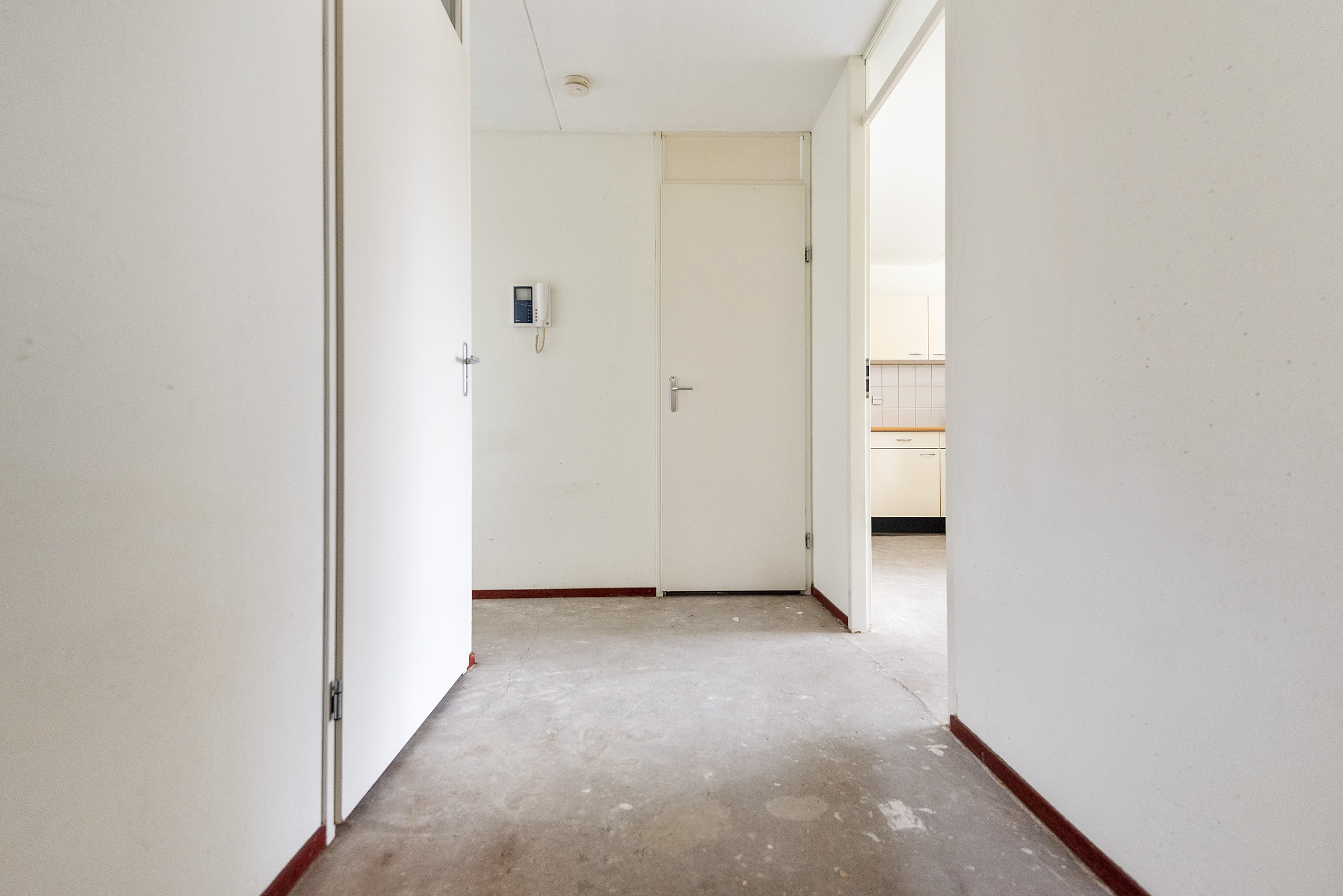 Entree, hal, toilet met fonteintje, wasruimte annex bijkeuken en de bergkast met de CV-ketel (Intergas HR, bouwjaar circa 2015) en mechanische ventilatie. De woonkamer heeft vrij uitzicht en geeft toegang tot het zonnige balkon op het noordwesten gelegen. De ruime half-open keuken beschikt over een standaard keukenblok met wat extra kasten, mogelijkheden en ruimte genoeg om van deze keuken wat moois van te maken. Er is een riante ouderslaapkamer en ruime 2e slaapkamer. De badkamer is voorzien van een douche en wastafel.