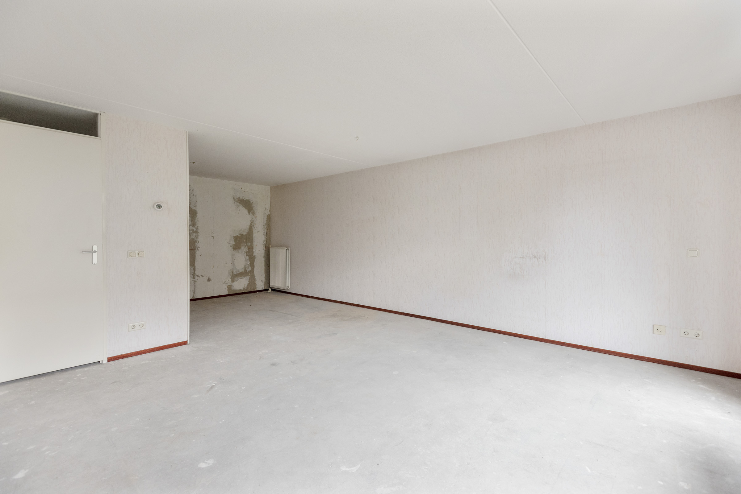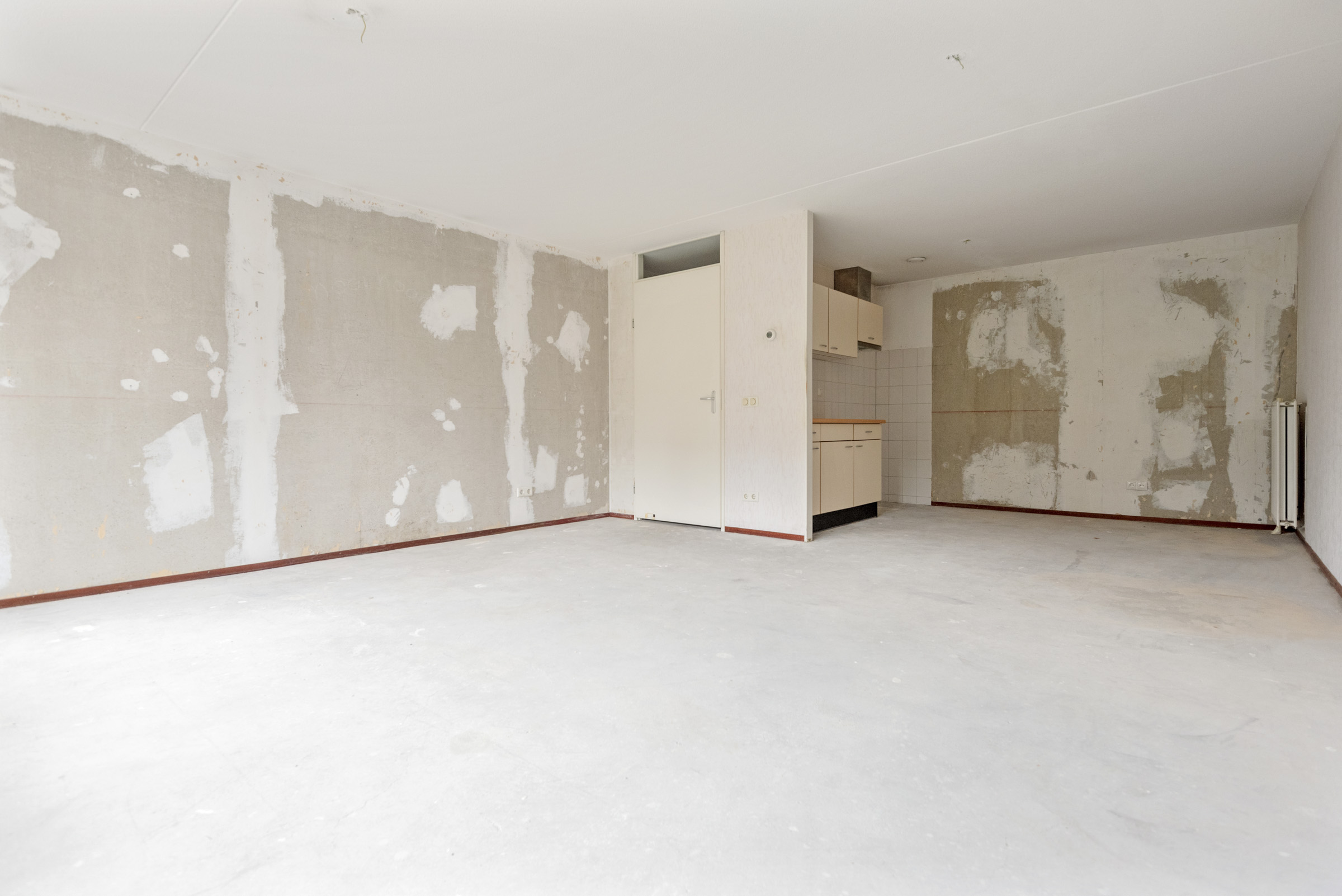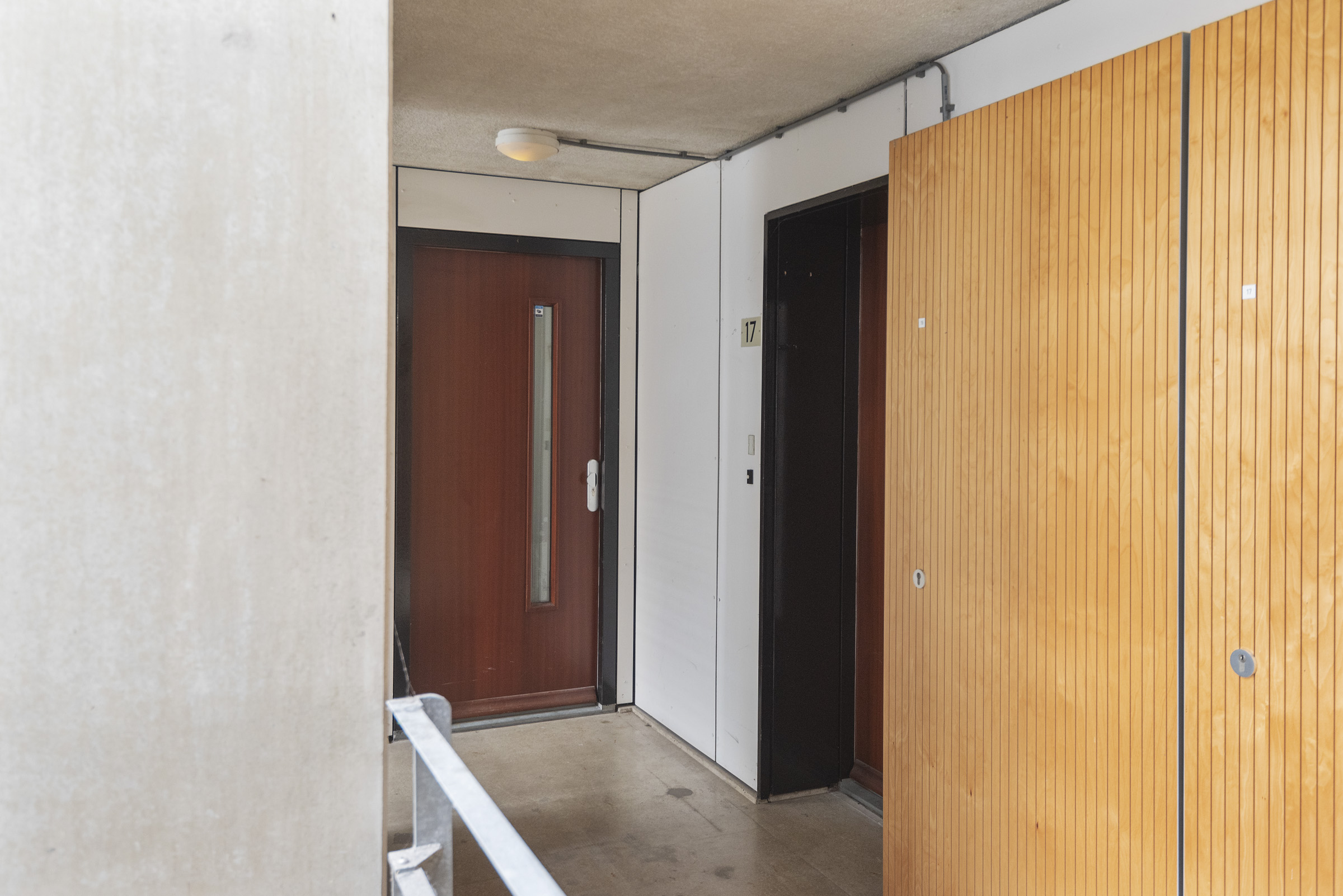 Entree, hal en het toilet met fonteintje. De woonkamer geeft toegang tot het op het zuidoosten gelegen balkon. De basic open keuken is voorzien van een afzuigkap. Er is een riante ouderslaapkamer en ruime 2e slaapkamer. De badkamer is voorzien van een douche en wastafel. In de wasruimte tref je de aansluitingen van de wasmachine en droger, de CV-ketel (Intergas HR, circa 2019) en mechanische ventilatie.