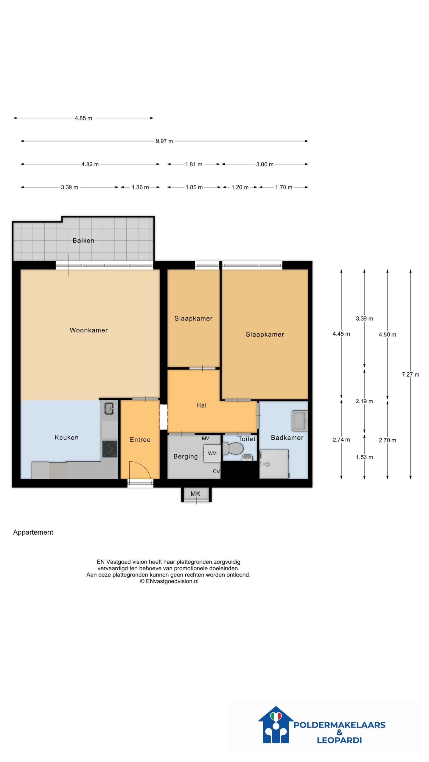 Entree, hal, toilet met fonteintje en de bergkast met de aansluitingen voor de wasmachine en droger, CV-combiketel (Intergas HR, bouwjaar circa 2019) en mechanische ventilatie. De woonkamer heeft vrij uitzicht en geeft toegang tot het op het zuidoosten gelegen balkon. De moderne half-open keuken is voorzien van de volgende apparatuur: kookplaat, afzuigkap, combi-oven, koel-vriescombinatie en vaatwasser. Er is een ruime hoofdslaapkamer en een prima 2e slaapkamer. De badkamer is voorzien van een douche en wastafel.