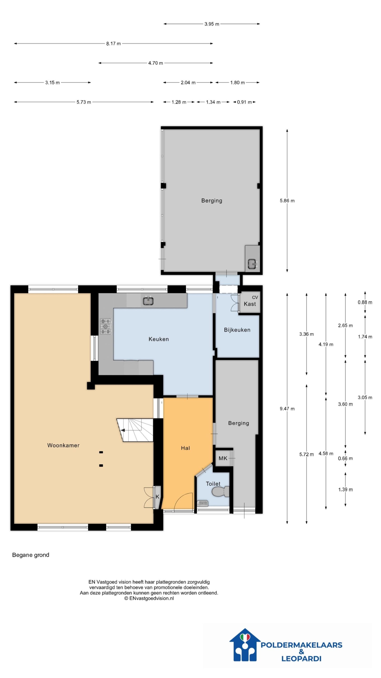 In de aangrenzende bijkeuken is tevens de opstelplaats van de CV-ketel en loopdeur (de originele achterdeur) naar “de keet” , annex multifunctionele (workshop)ruimte welk voorzien is van een keukenblokje en de loopdeur naar de achtertuin. Deze “keet” is opzichzelfstaand (2 gekoppelde Portocabins) ten opzichte van de woning. Mocht je behoefte hebben aan meer tuin, dan kun je deze cabins verwijderen.