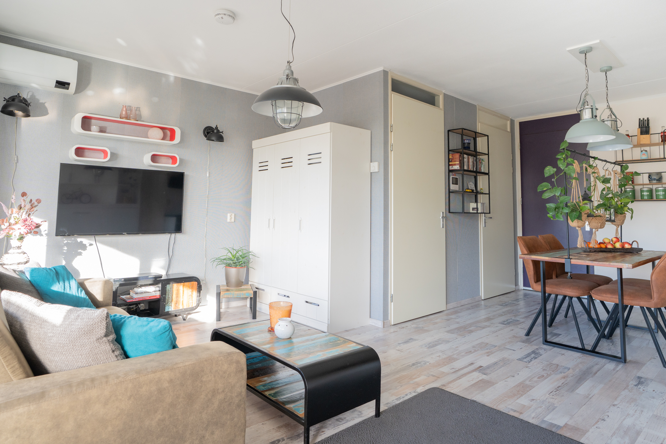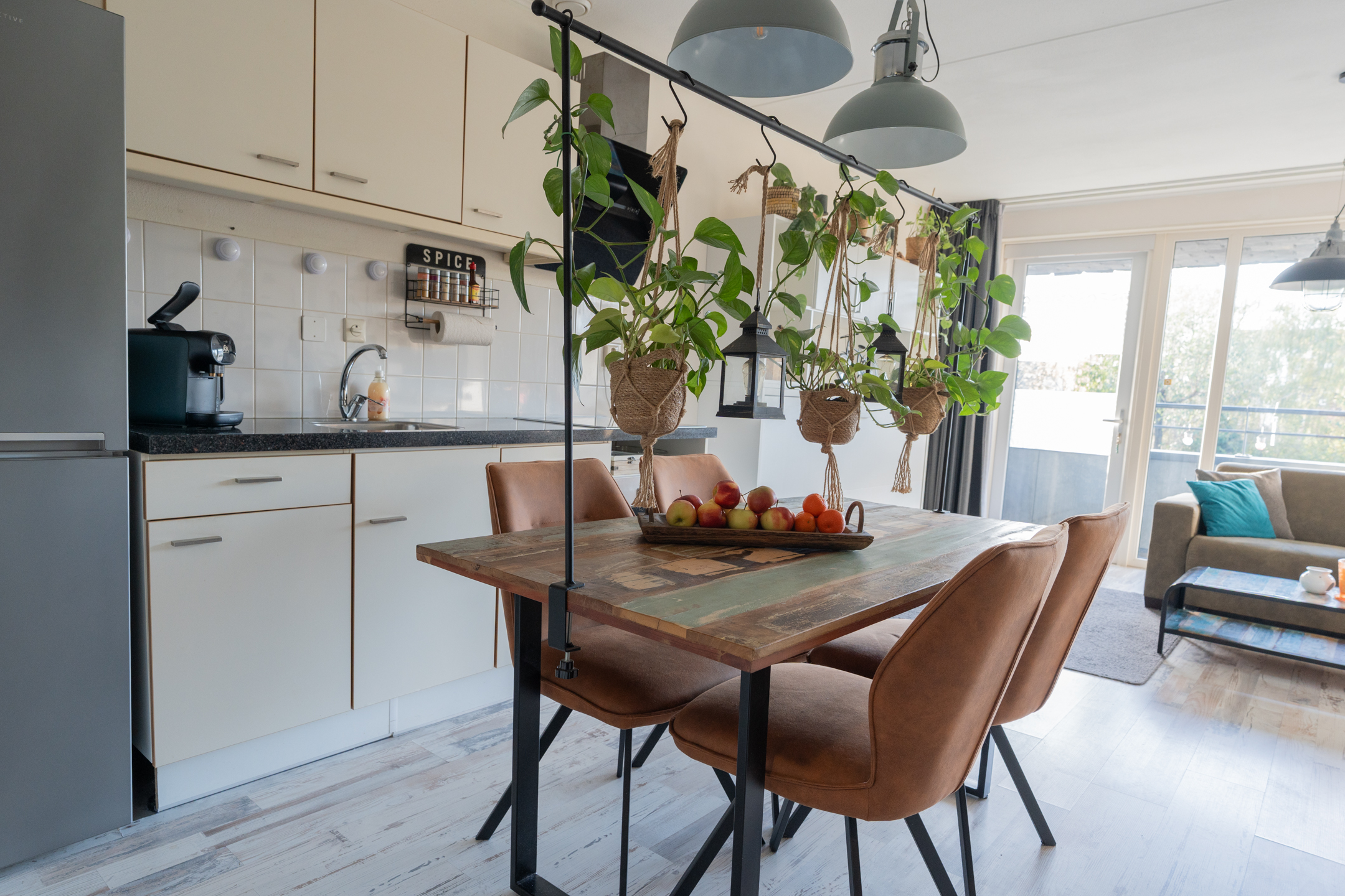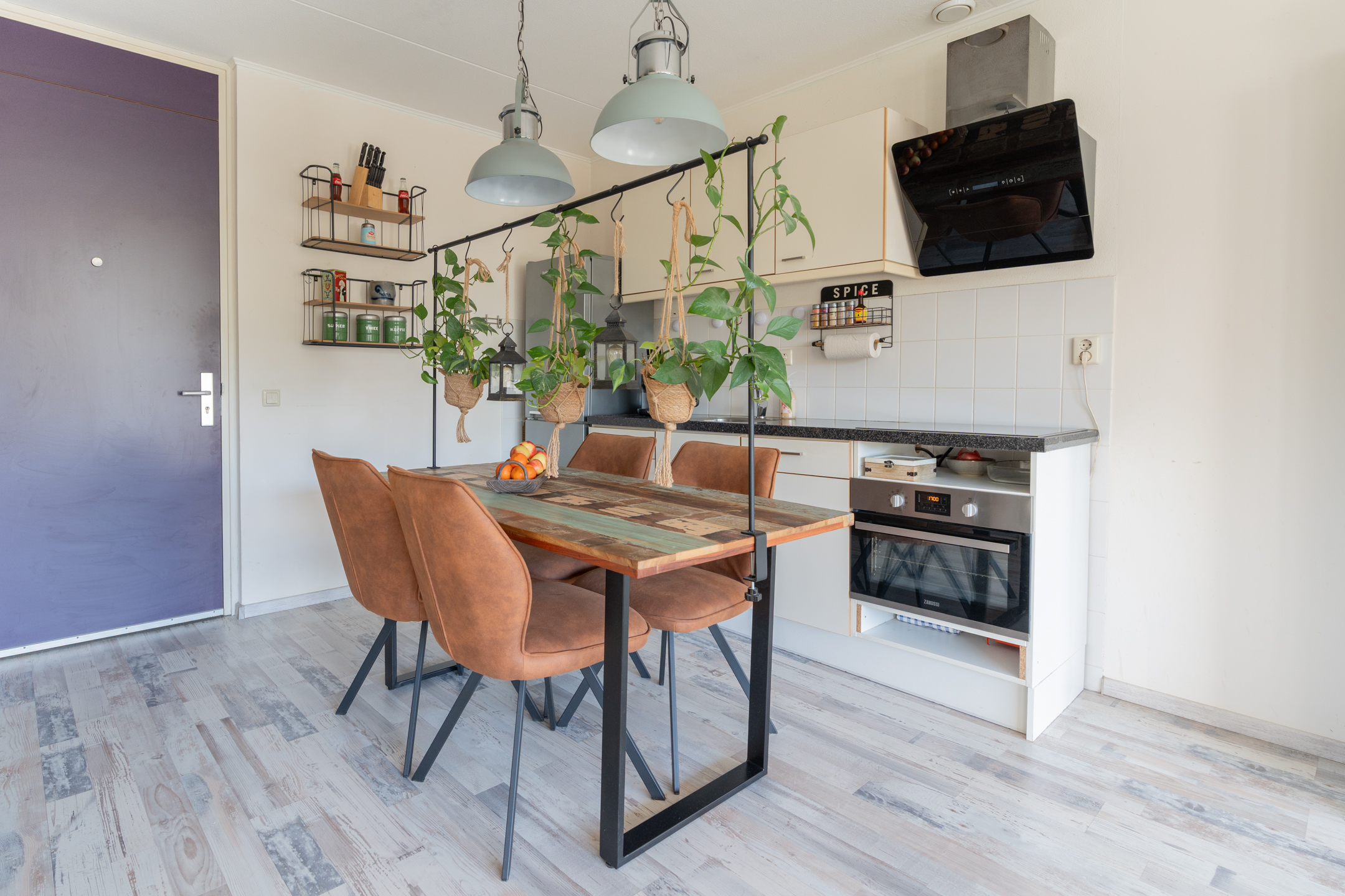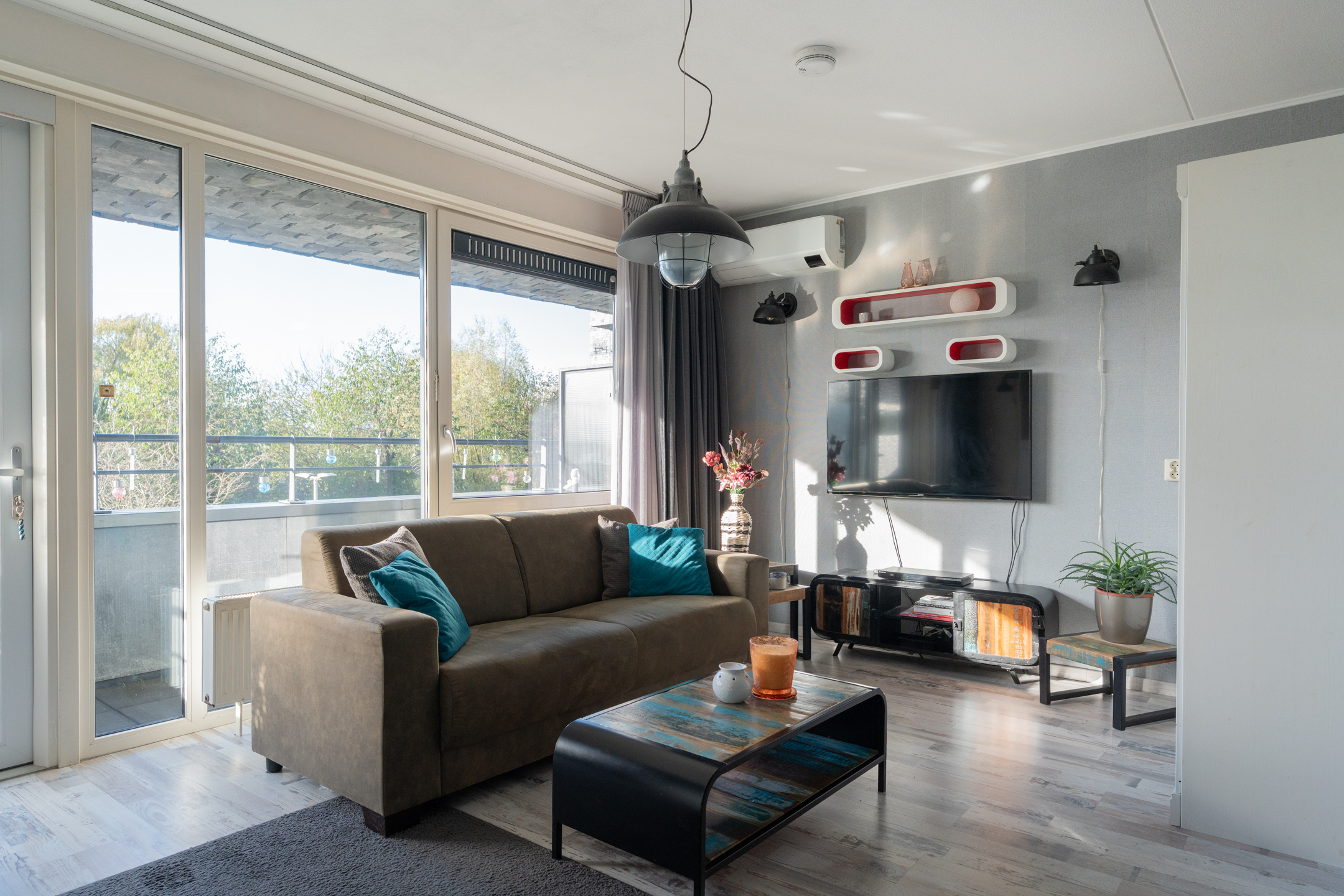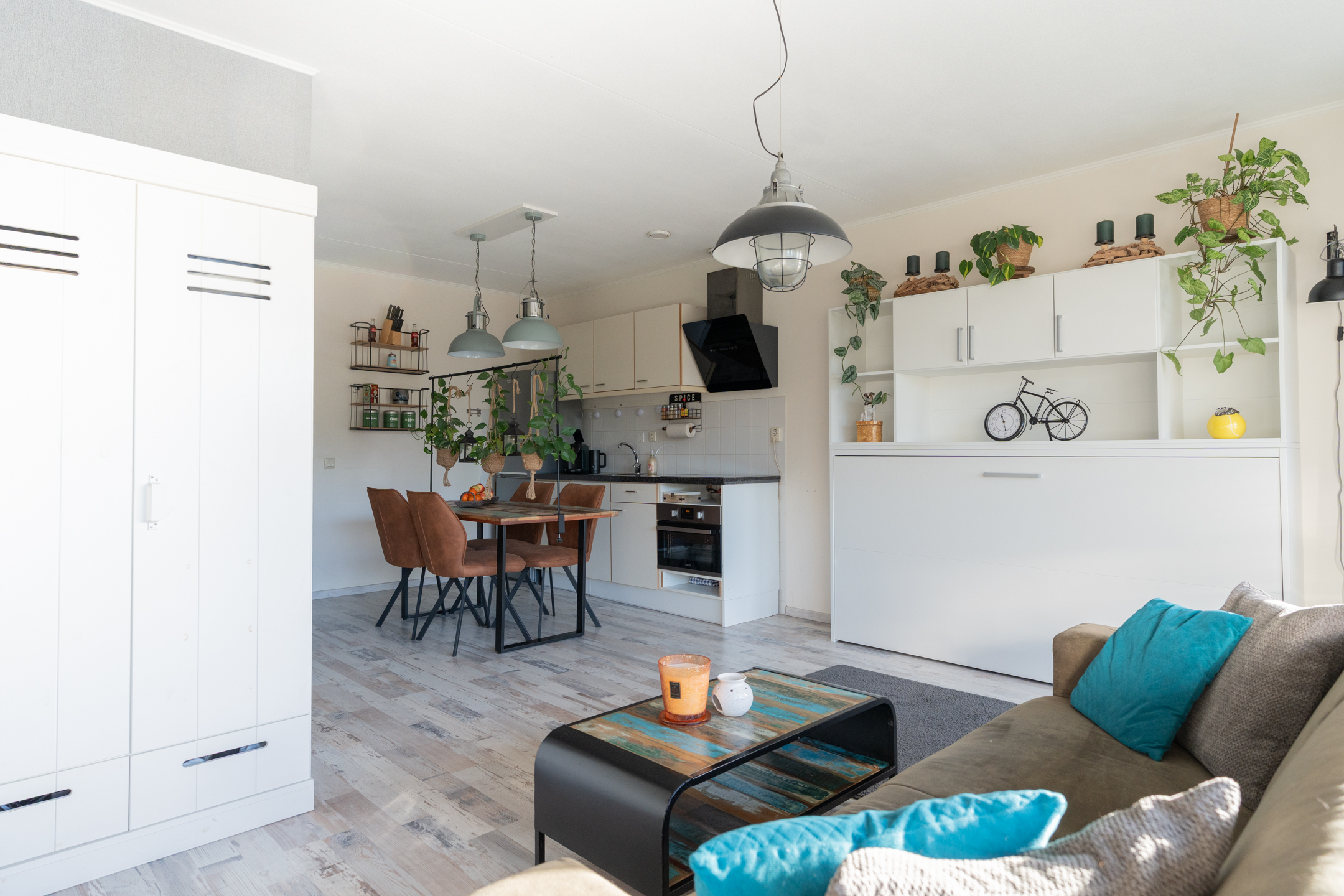 Je komt binnen in de lichte woon-/slaapkamer met grote raampartijen en een nette open keuken met stenen blad en recent vernieuwde inductiekookplaat, afzuigkap en oven. Dankzij de airco is het hier altijd comfortabel. Via de woonkamer stap je zo het royale balkon op, gelegen op het zuidwesten, perfect om van de middag- en avondzon te genieten, met een vrij en groen uitzicht. De frisse badkamer is uitgerust met een douchecabine, wastafelmeubel en toilet. In de praktische provisieberging vind je volop opbergruimte, meterkast en de aansluiting voor de wasmachine. Het bed is slim weggewerkt in een kast, maar wie wil, kan hier eenvoudig een aparte slaapkamer creëren.