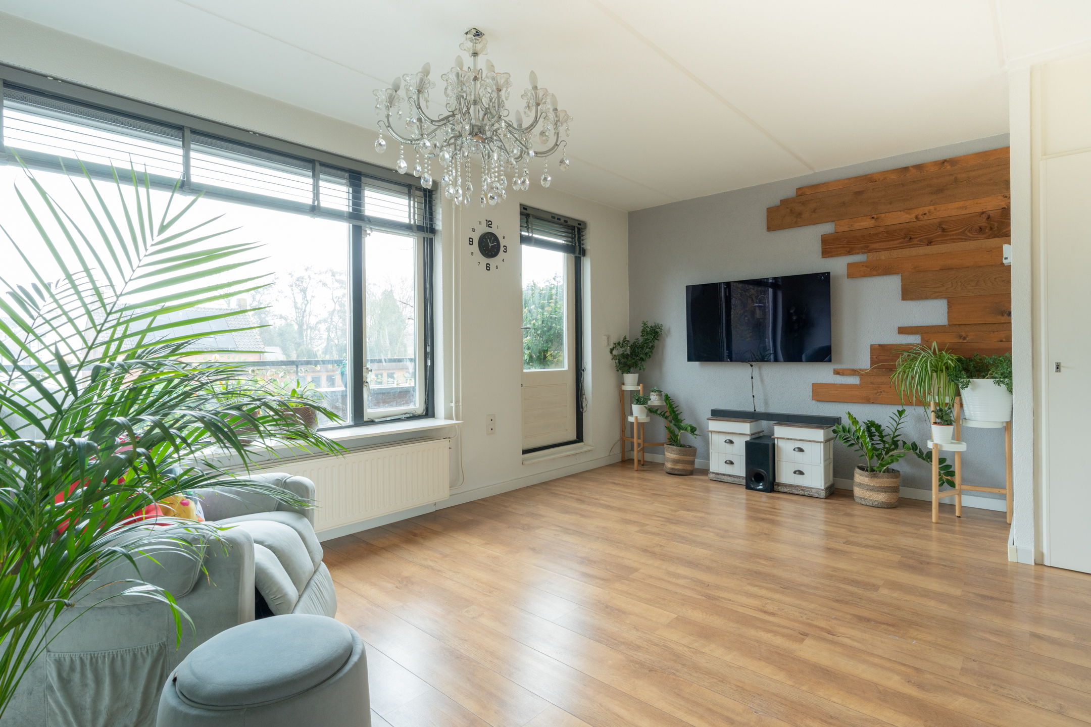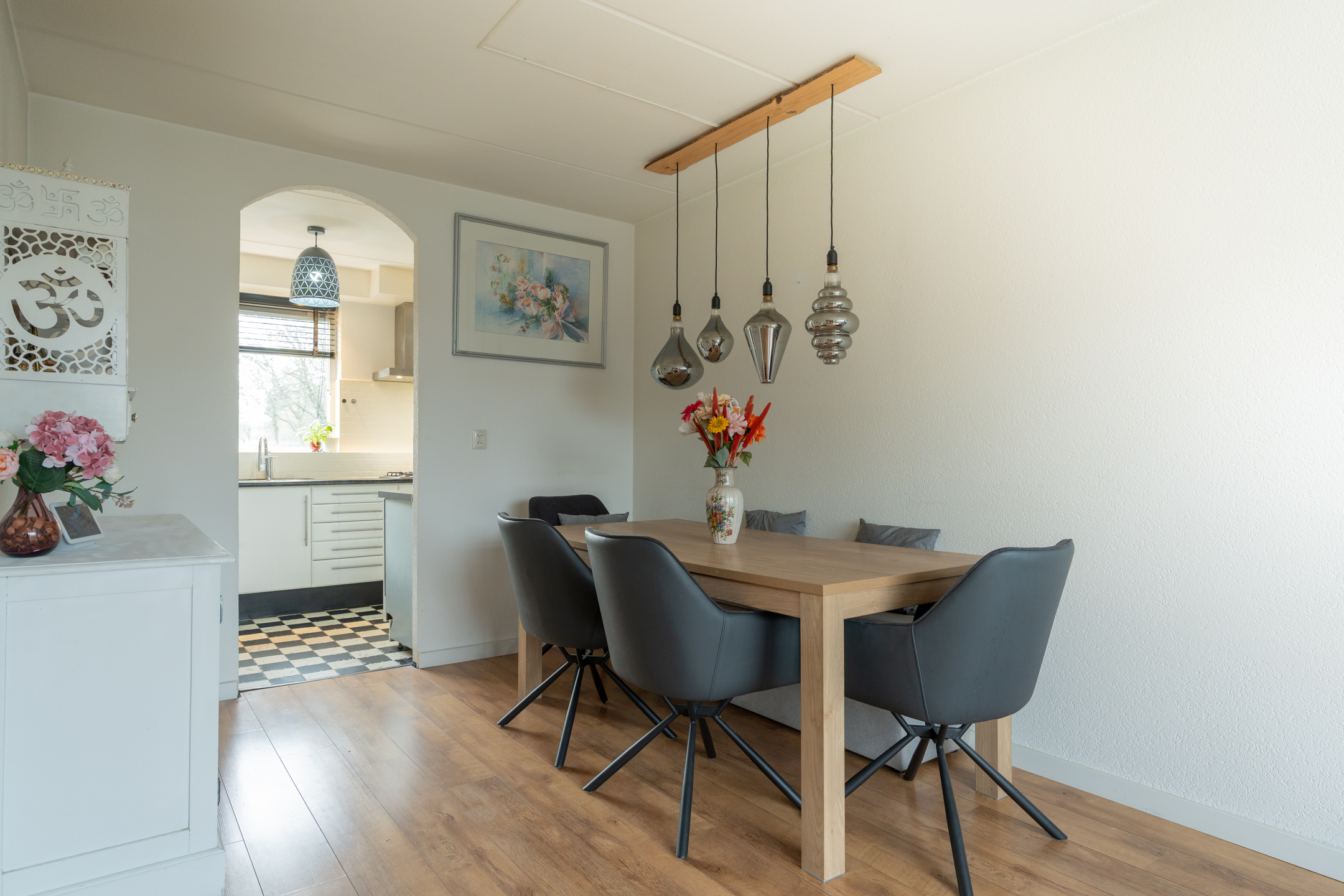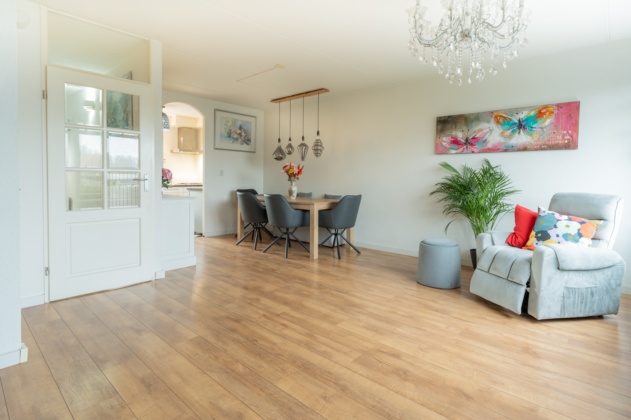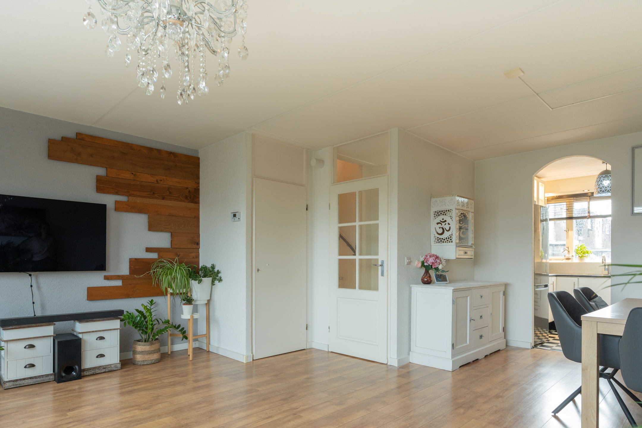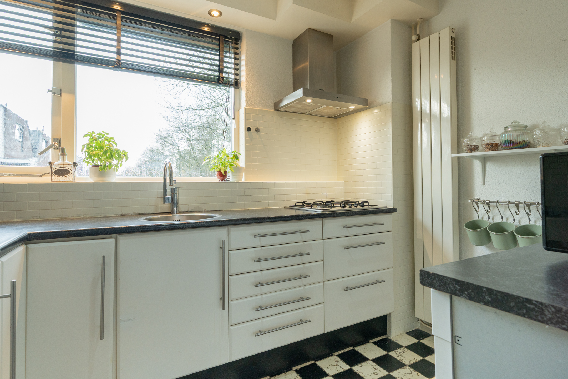 Entree, hal met stijlvolle zwart-witte vloertegel, kast met de c.v.-ketel (Vaillant 2023), vernieuwde uitgebreide meterkast (2023), glasvezel en slimme meters. Tevens tref je hier het toilet met fonteintje en de trapopgang. De lichte woonkamer heeft grote ramen en een handige provisiekast. Via de woonkamer stap je het balkon met vrij uitzicht op, waar je kunt genieten van de ochtendzon. De halfopen keuken aan de voorzijde is voorzien van een zwart-witte tegelvloer, een ingebouwd 4-pits gasfornuis met afzuigkap en losse apparatuur zoals oven, magnetron, vaatwasser en koel-/vriescombinatie. Hier vind je ook de aansluiting voor de wasmachine.