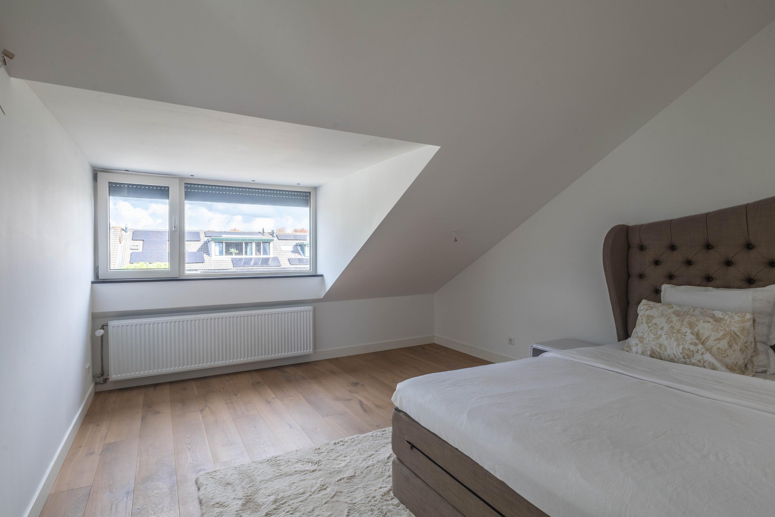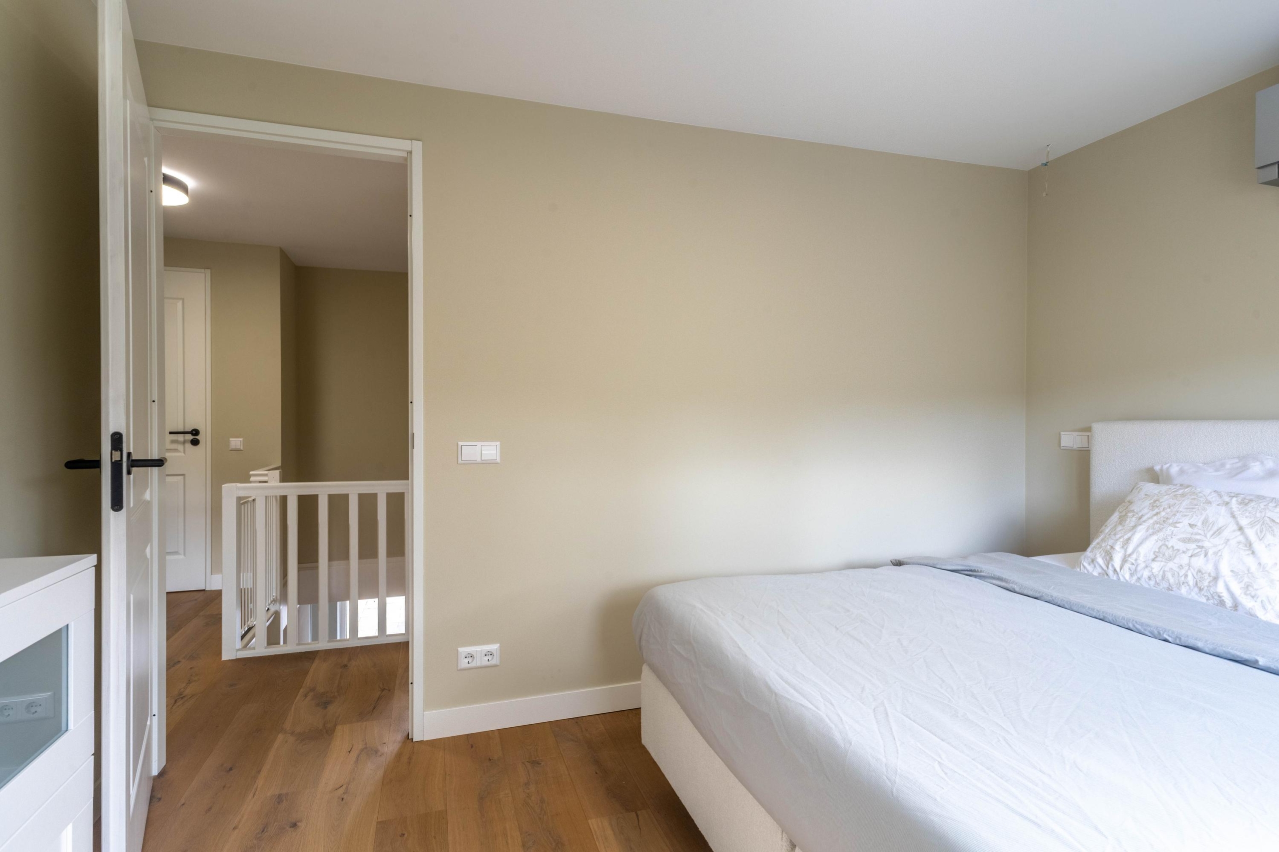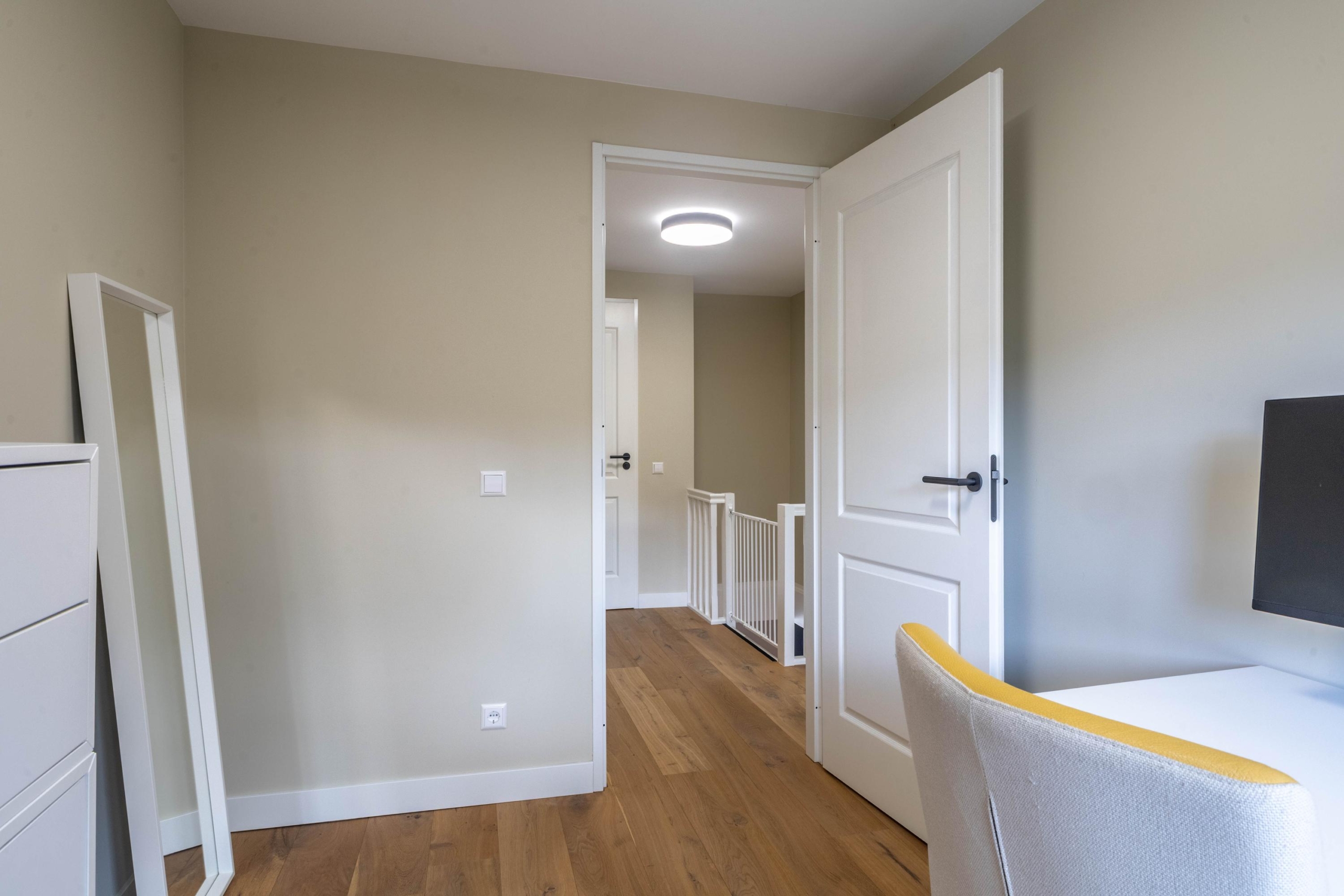 Overloop, die leidt naar een luxe, moderne badkamer is voorzien van een ligbad, inloopdouche met nisje, toilet en wastafel in meubel met bronzen kranen en elektrische vloerverwarming. Aan de voorzijde tref je een ruime slaapkamer met schuifpui naar ruime balkon. Aan de achterzijde is een riante ouderslaapkamer met airco en een 3e slaapkamer gelegen. Warme houten vloeren en antracietkleurige rolluiken zorgen voor een stijlvolle afwerking.
